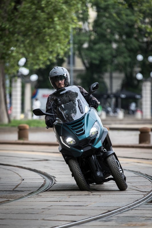 Quello che colpisce, una volta in sella e ancor prima di iniziare il nostro giro, è la qualità complessiva. Rispetto anche alla versione GT, plastiche e finiture, così come i pulsanti, sono di un altro livello. L'azionamento del freno a mano, tanto per fare un esempio, non avviene attraverso a un banale pulsante situato sul manubrio, ma con una elegante e curata levetta posizionata al centro della plancia. Belle e ampie le pedane passeggero, che si ripiegano su se stesse e che comunque non ingombrano. Ed è davvero curato lo stile automobilistico del cockpit, con una strumentazione analogica (contagiri e tachimetro) che ben si sposa con TFT centrale.
