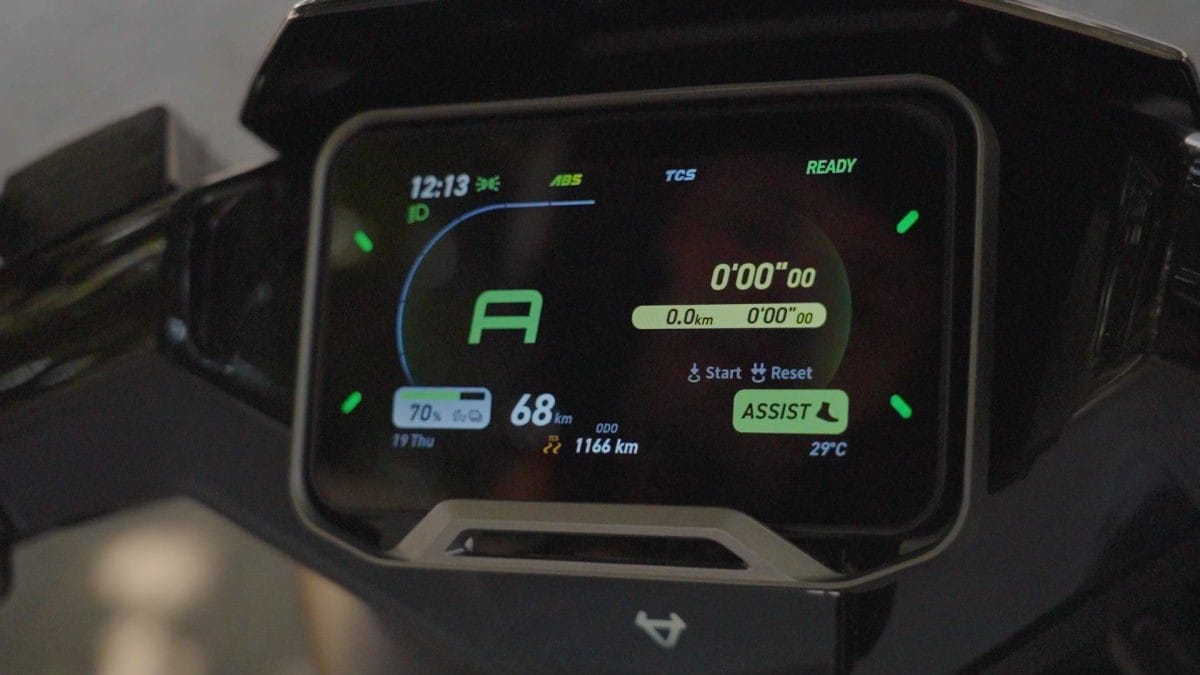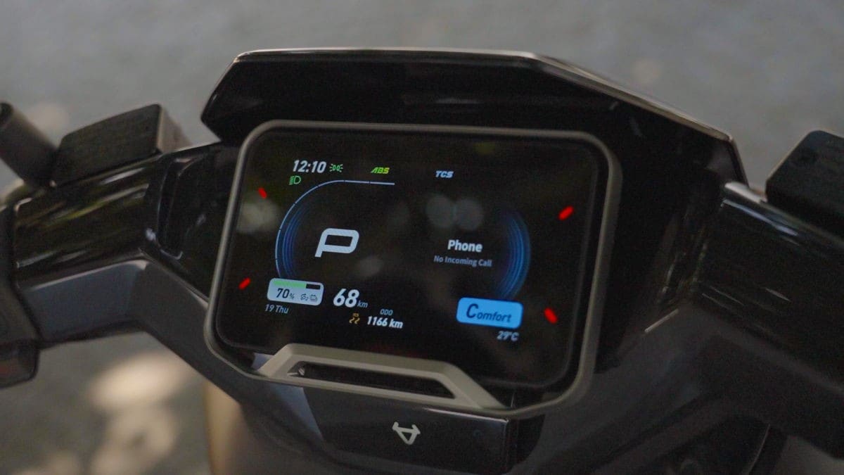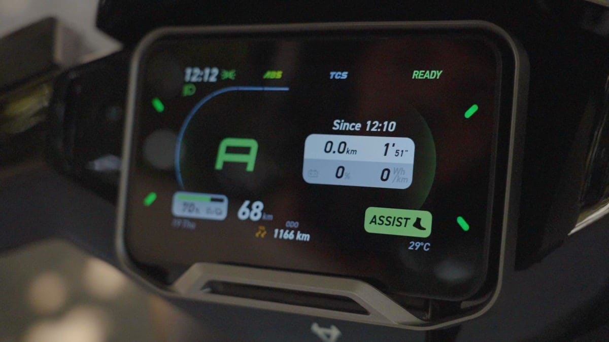 Al di là della forma, uno scooter come questo punta tutto sull'elettronica. La nuova plancia di comando è piena di funzionalità utili, specie per chi ha poca dimestichezza con l'elettrico, le sue dinamiche di consumo e di guida: attraverso una rotellina collocata sulla parte destra del manubrio si possono consultare i consumi istantanei e le percorrenze, il controllo della batteria (temperatura ed energia rimanente) e l'interfaccia con lo smartphone, che è connettibile tramite una app dedicata. Sulla destra, vicino all'acceleratore, c'è il selettore delle mappe motore.