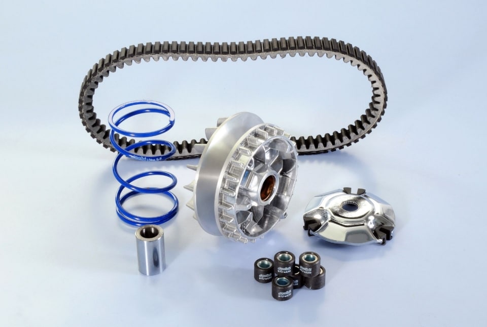 Polini offre tutti gli elementi della trasmissione. La frizione è regolabile intervenendo sulle molle, quindi si può tarare scooter per scooter, a seconda delle preferenze e delle prestazioni per avere l’attacco migliore. Va abbinata alla campana frizione Polini, ricavata dal pieno, e al variatore Evolution che comprende una cinghia più stretta dell’originale, dedicata al sistema Polini, le molle di contrasto e naturalmente i rulli di scorrimento del variatore.