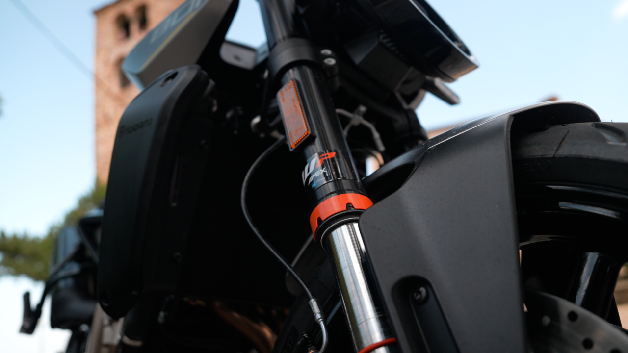Parliamo infatti di due moto europee premium, con poco spazio a componenti asiatici: le sospensioni sono WP, i freni J.Juan, l’ABS di Bosch, i corpi farfallati Dellorto. Certo, il motore KTM 790 è assemblato in Cina da CFMOTO; ma vanta soluzioni che al momento i cinesi non impiegano: una impeccabile gestione RBW, pregiati trattamenti DLC, pistoni forgiati box-in-box, due contralberi, carter semi-secco, condotti di aspirazione separati per evitare interferenze fluidodinamiche, frizione anti-saltellamento, ultime tre marce con dentatura pallinata, eccetera.