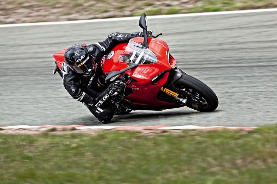 Il confronto tra il bicilindrico della Panigale e il "vecchio" 1198 nasce spontaneo: e i risultati danno ragione alla prima. Il responso del cronometro in accelerazione (con mappa Race) tuttavia non rende piena giustizia delle reali potenzialità del nuovo twin, visto che in partenza è tutt'altro che facile modulare gas e frizione evitando di impennare. E lasciare per strada qualche decimo, più che un rischio è una certezza. Il vantaggio della nuova unità e dell'ordine di 2-3 decimi sul traguardo dei 400, dei 1000 e dei 1500 metri, avvicinando (e a volte ricalcando) le prestazioni delle migliori quattro cilindri. Meno positiva la prova di sorpasso, dove emerge la differenza di coppia ai bassi del nuovo Desmo rispetto al vecchio. Come sempre eccellente la resa dell'impianto frenante (e dell'ABS); merita una segnalazione anche la riduzione di peso: rispetto alla 1198 sono stati tolti ben 5 kg