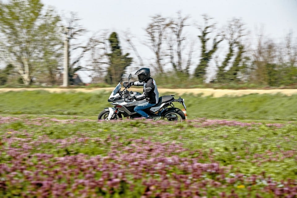 Le due 900 esplorano il loro vero terreno di caccia, ovvero le strade extraurbane, in modi piuttosto diversi, che evidenziano la polarità tra queste due interpretazioni del concetto GT: se volessimo paragonarle a due acque minerali, la BMW sarebbe “liscia” e la Yamaha “gassata”. La Tracer 900 fa infatti valere le doti del suo propulsore, che porta in un attimo a velocità molto alte e sostiene senza apparente sforzo medie elevatissime, che combinate a sospensioni settate alla ricerca del comfort rendono i trasferimenti veloci estremamente piacevoli – grazie anche alla buona stabilità trovata dall’ultima generazione di questa Yamaha. Pure BMW è a suo agio in queste condizioni: la sella è decisamente più dura, ma il mono semiattivo (optional) ci mette una buona pezza mantenendo livelli di comfort assolutamente adeguati; per tenere il passo della Yamaha bisogna però spremere un po’ di più il motore, anche perché a fronte di una potenza minore ha la stessa rapportatura finale.