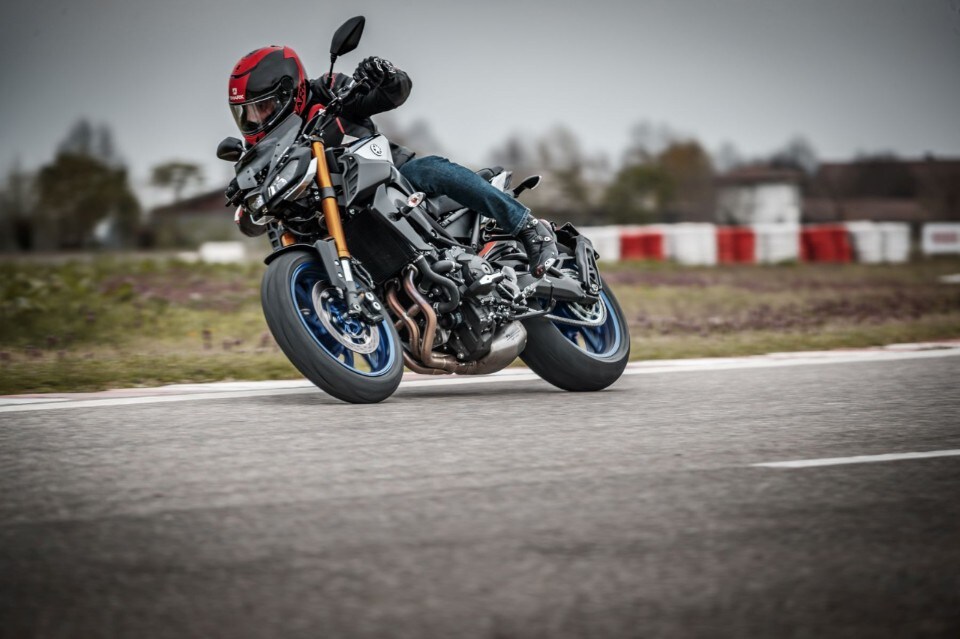 Tutto in sella alla MT-09 avviene in maniera piuttosto diretta e decisamente veloce. Le reazioni della ciclistica sono sempre fulminee, anche se più controllate rispetto alla versione standard (che naviga al limite del nervosismo) grazie a sospensioni di alto livello, che regalano alla media Yamaha una guidabilità di riferimento. La trazione, peraltro sorvegliata dal TC non cornering, è ottima e le sequenze di curve vengono digerite senza alcun problema, bastano una semplice pressione sul manubrio e uno sguardo al punto di corda per trovarsi con il pneumatico anteriore esattamente dove volevamo.