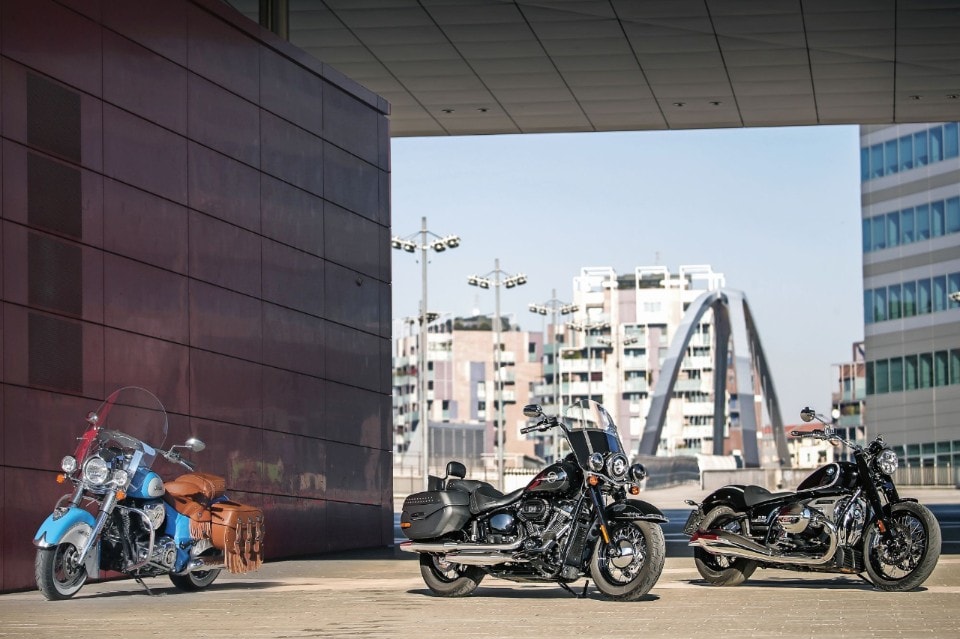 La regina Harley deve fronteggiare nuove pretendenti al trono delle cruiser: la Indian Chief dall’america profonda e la BMW R 18 dalla Germania di un secolo fa