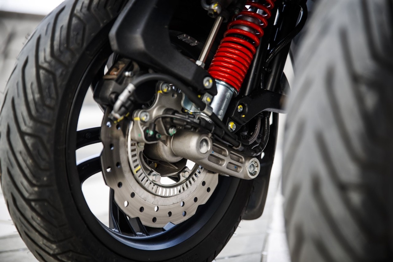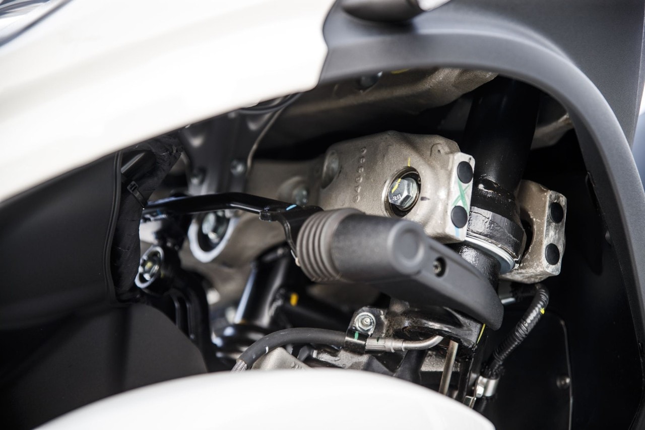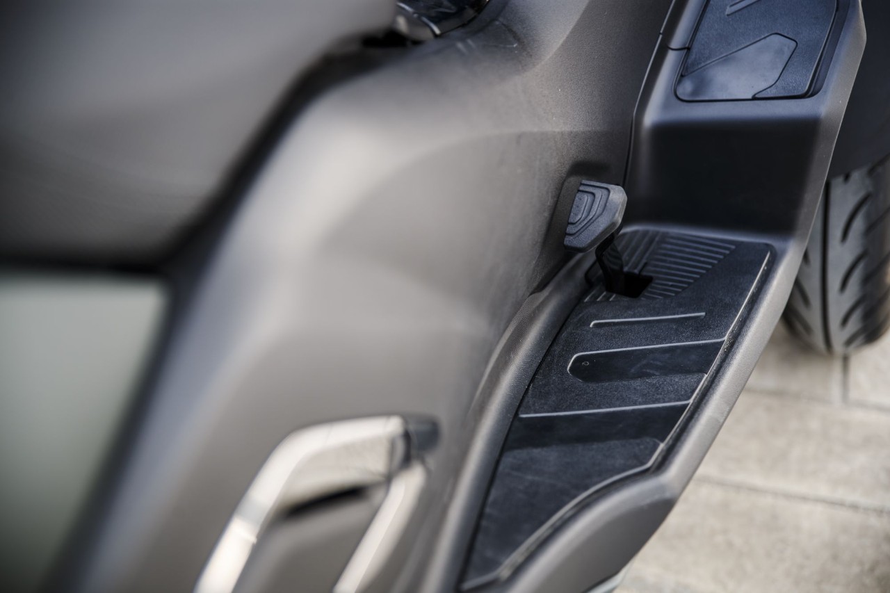 Il blocco elettrico del sistema di basculamento (non presente sui Tricity più piccoli) è una comodità: non tanto al semaforo, ma quando è il momento di parcheggiarlo perché facendo restare lo scooter in equilibrio permette di spostarlo a spinta senza fatica. Nelle soste brevi poi è comodo il cavalletto laterale, che i Piaggio MP3 non hanno.
