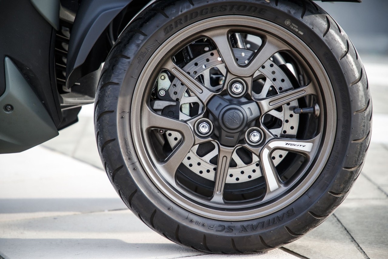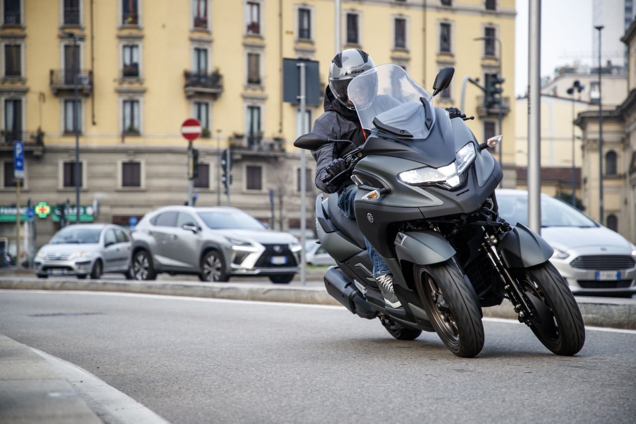 Il Tricity è stabile, sempre rassicurante e se si spalanca il gas con disinvoltura e il posteriore non perde aderenza anche con l’asfalto freddo, grazie anche al controllo di trazione sempre vigile. Efficace la frenata, anche se all’inizio bisogna abituarsi al sistema integrale. Le sospensioni digeriscono bene le malformazioni. Quando si entra in autostrada, esce l’animo GT dello Yamaha: nell’allungo arriva e supera i 130 km/h indicati, con una buona protezione dall’aria.