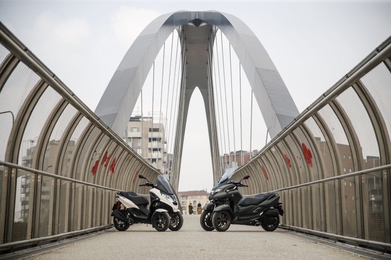È bello svegliarsi al mattino, anche quando fuori piove, e poter contare su uno scooter più sicuro. Più sicuro grazie a quella ruota in più che, raddoppiando la superficie di contatto e quindi l’aderenza, riduce il rischio di una scivolata: in particolare quando si tratta di affrontare l’asfalto freddo e magari bagnato. Per chi si sposta in città, ma ha bisogno di un mezzo versatile per muoversi rapidamente anche in tangenziale e autostrada, la cilindrata 300 è un buon compromesso. Non a caso è quella che accomuna le ultime proposte a tre ruote di Piaggio e Yamaha, che con l’MP3 300 e il Tricity 300 rappresentano modi differenti di concepire un tre ruote.
