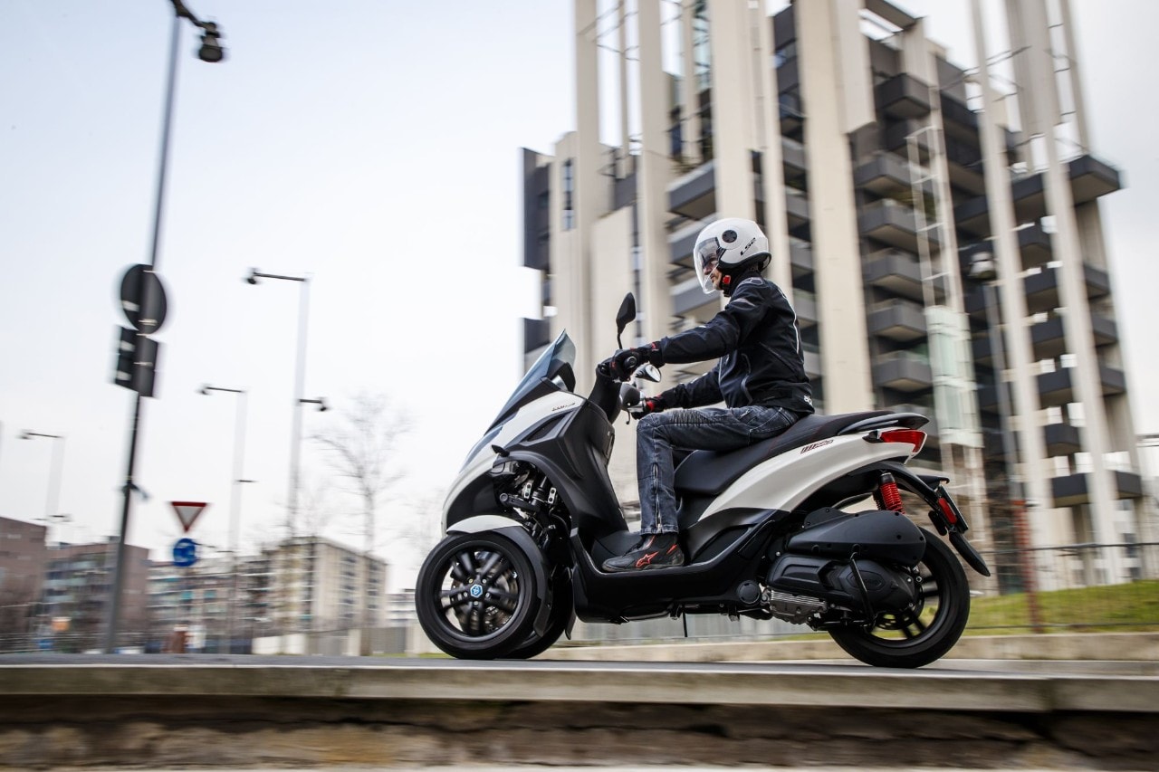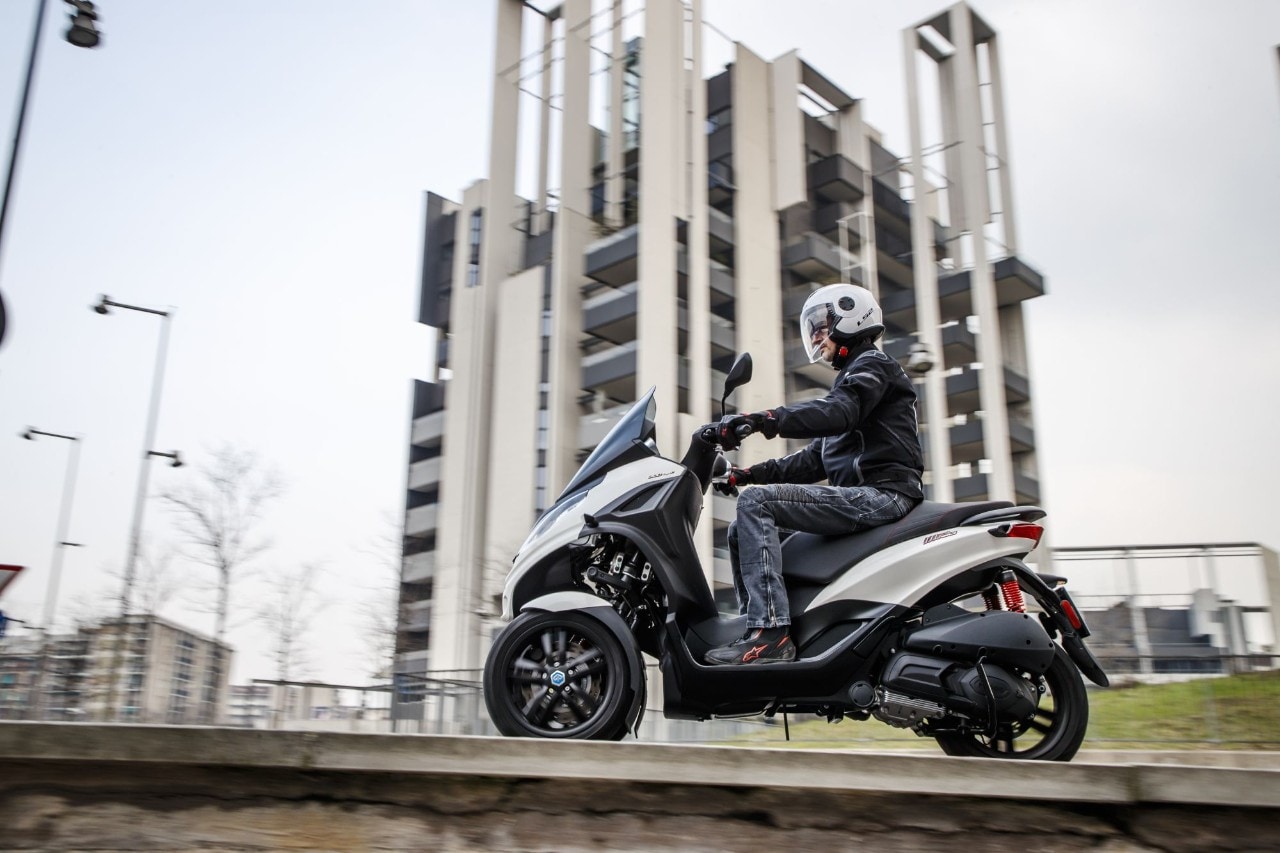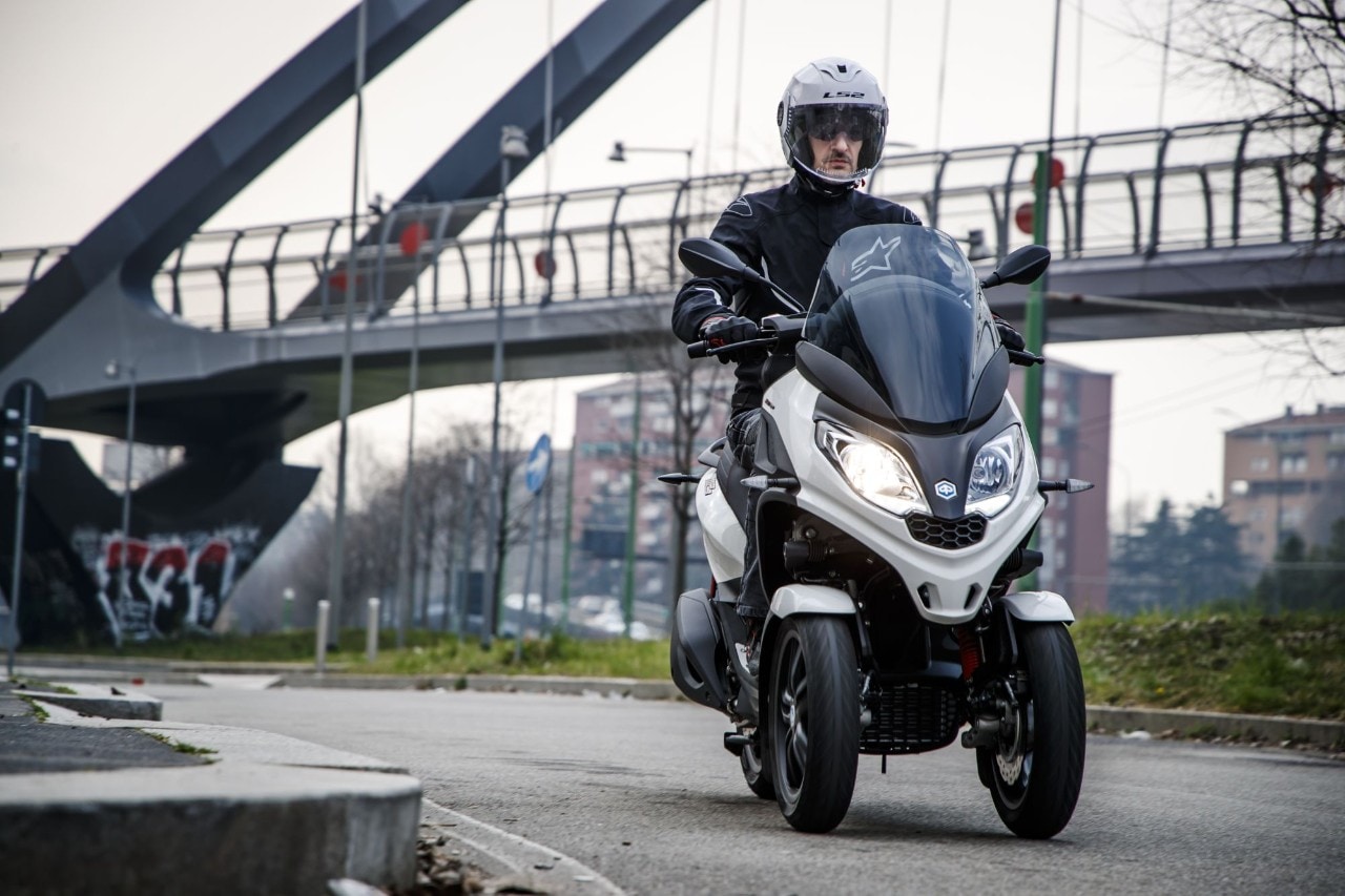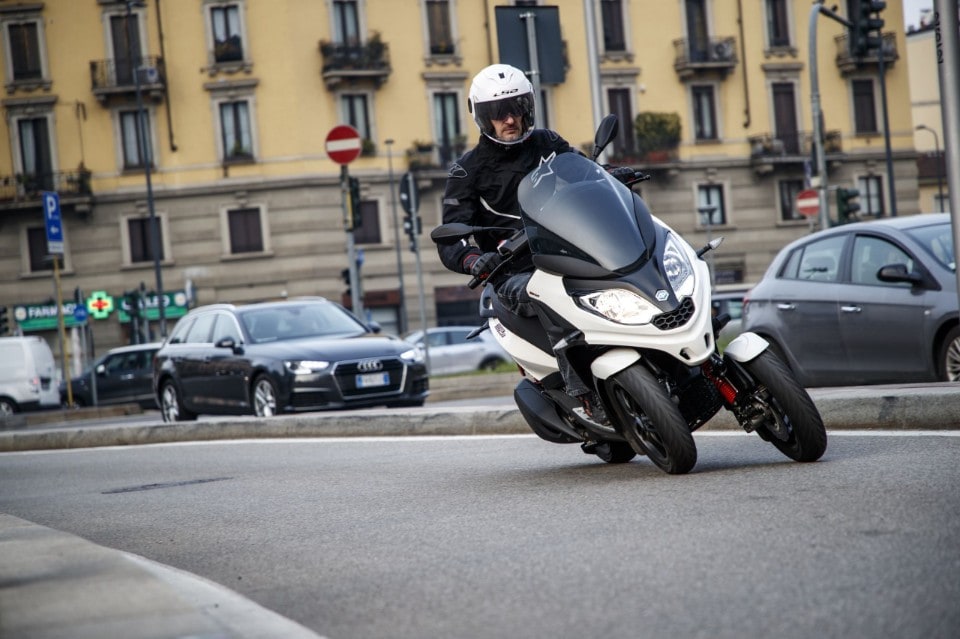 Nel traffico l’MP3 è agile e maneggevole, ma al tempo stesso stabile e sempre prevedibile quando la velocità si alza. La facilità con cui scende in piega e la sicurezza con cui affronta gli ingressi in curva fanno sentire più rilassati e sicuri. Il motore 300 da 25,8 CV è pronto, ha un bello spunto e un buon allungo; la trasmissione è fluida e scattante. Il controllo di trazione Piaggio ci ha convinti, così come i freni e l’ABS; e il pedale che attiva la frenata integrale è intuitivo da usare.