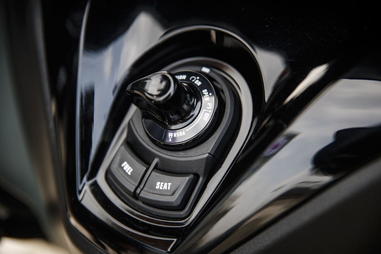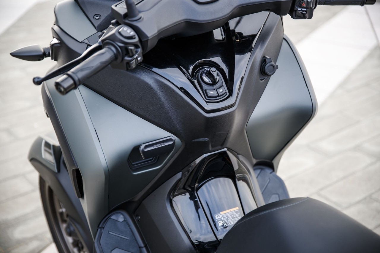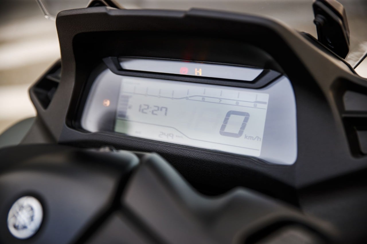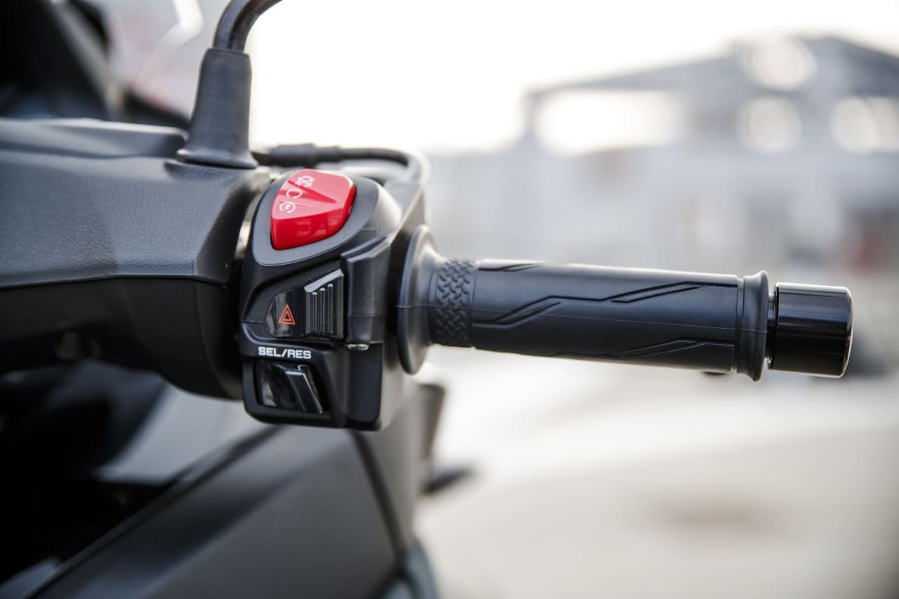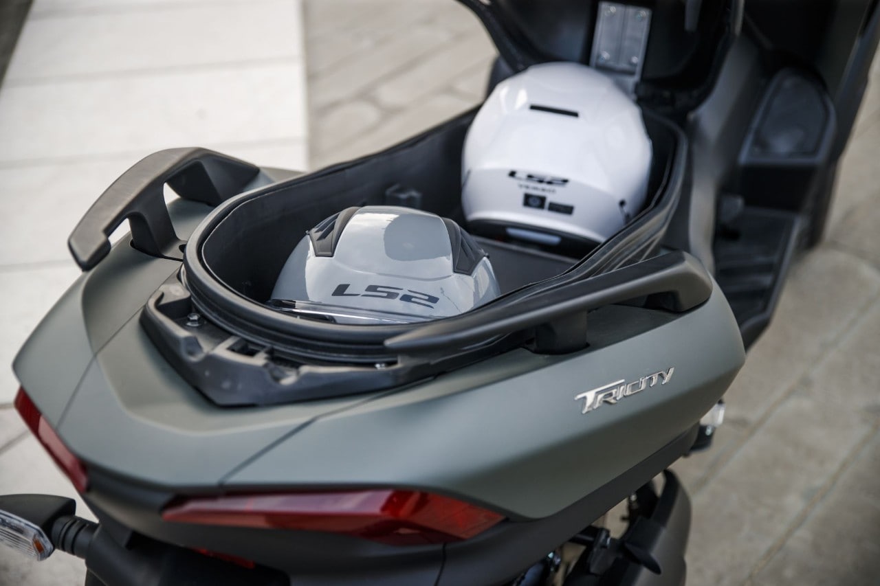Design elegante, luci a led, curato e ben fatto il Tricity ha un’ottima capacità di carico, con un sottosella capiente che può contenere due caschi integrali. Niente vani invece nel retroscudo, dove sono presenti il freno di stazionamento, la presa 12 volt, il commutatore che dialoga con la smartkey e i pulsantini per aprire sella e sportellino del carburante. La strumentazione è un display LCD chiaro e ben leggibile, che però non offre per ora la possibilità di connettersi allo smartphone.