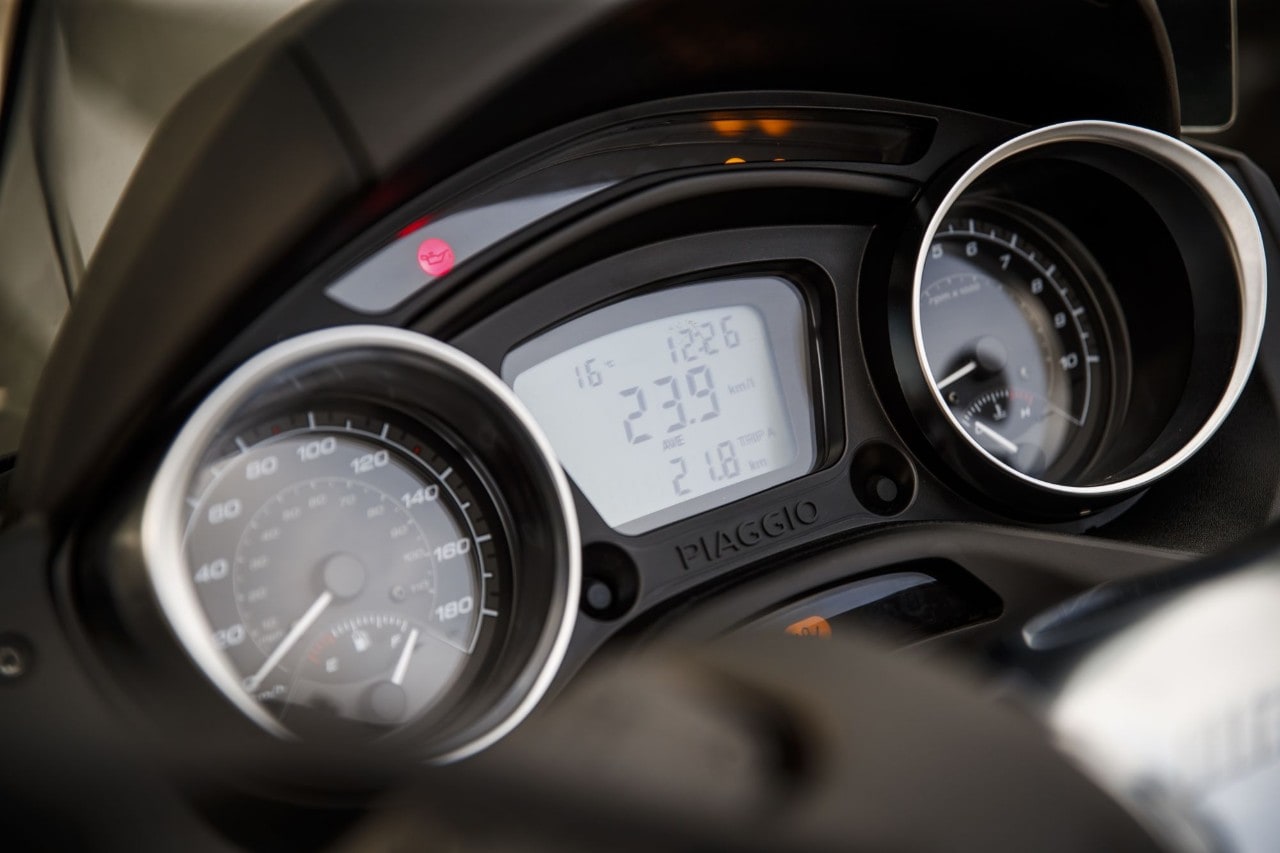 Da sempre quello che caratterizza i tre ruote Piaggio è l’essere intuitivi e immediati; questo 300 conferma la regola, anzi con lui è ancora più facile instaurare il feeling. In sella si è comodi e ben inseriti e i piedi trovano spazio sulla pedana, dove il tunnel si rivela utile da stringere con le gambe per avere più feeling durante la guida. La sella stretta permette di toccare bene terra ed è facile manovrare anche a motore spento.