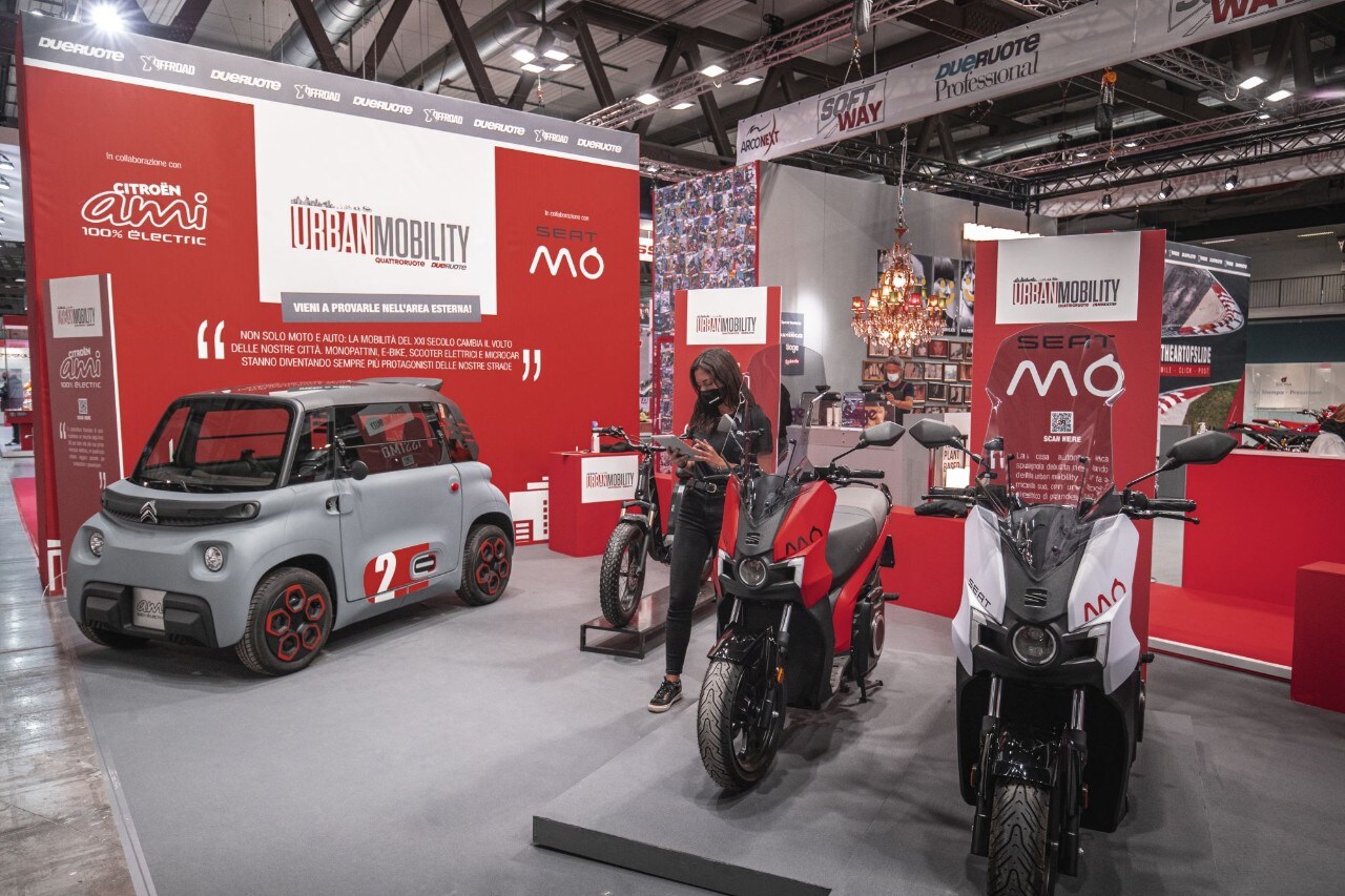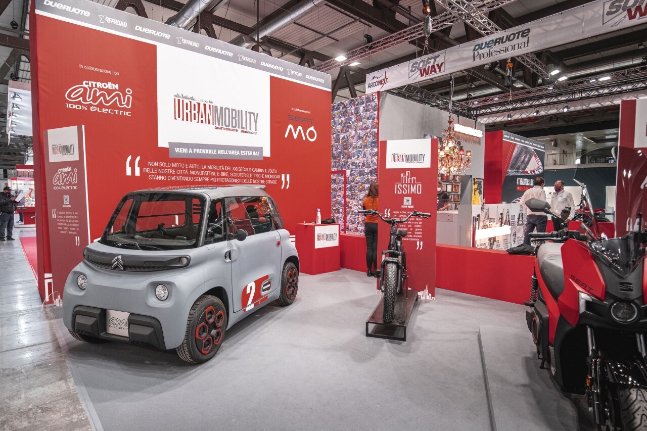 Con una prova comparativa, tra la redazione di Dueruote nella zona sud di Milano, ai padiglioni della Fiera di Milano che ospitano Eicma, nella periferia ovest, abbiamo verificato sul campo le singole predisposizioni di tutti i veicoli (Citroën Ami - quadriciclo elettrico, Seat MÓ 125 - scooter elettrico, Fantic Issimo - ebike, Seat MÓ 65 - monopattino elettrico) esposti nell’area Mobilità Urbana del nostro stand, al padiglione 18. Volete sapere chi ha primeggiato? Non vi resta che guardare il video!
