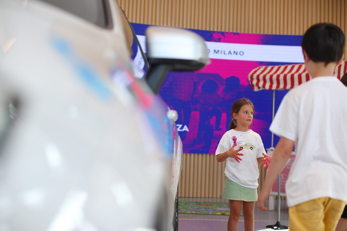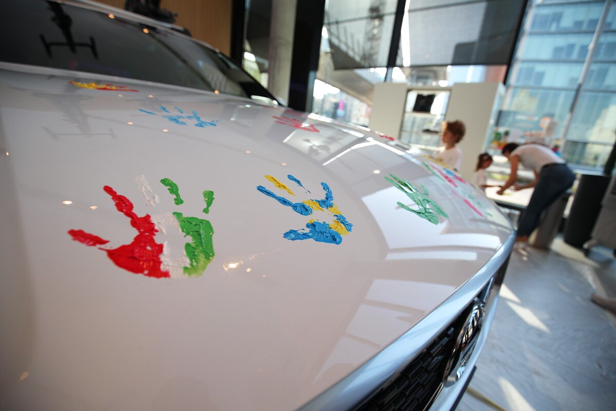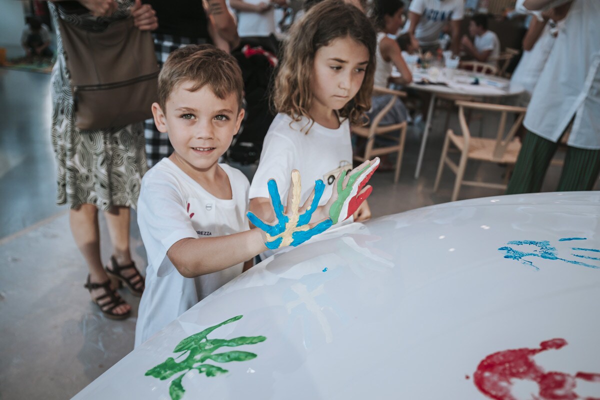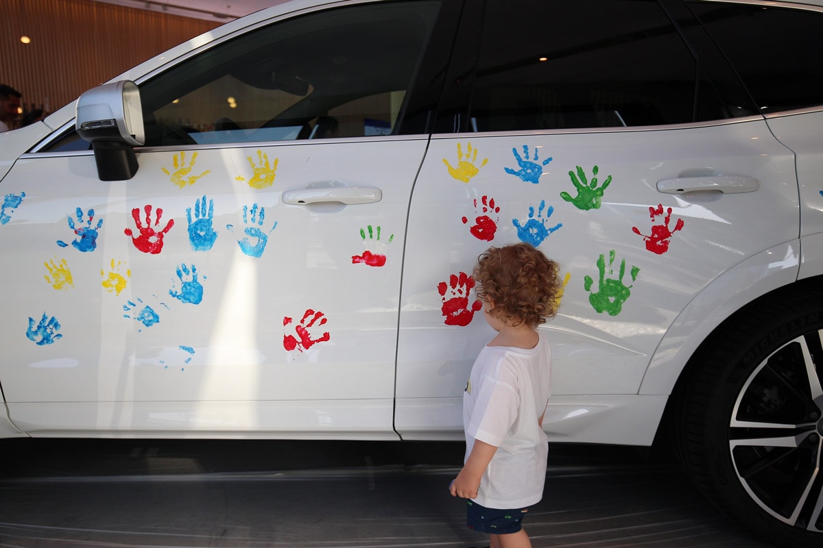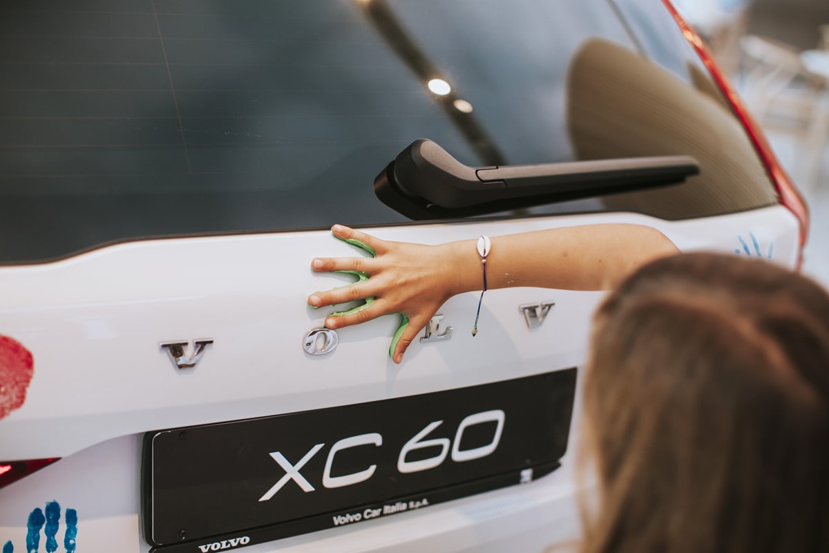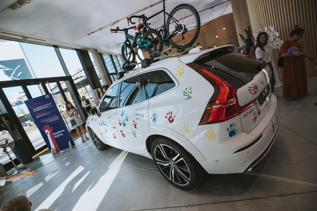 Le porte del Volvo Studio di Milano si sono aperte alle 17.30 per accogliere i più piccoli, c’era anche chi muoveva i primi passi, in un pomeriggio “fuori dalle regole per imparare le regole”. Zucchero filato, piste di macchinine elettriche ma anche segnali stradali e giochi didattici sulla mobilità e un albero ai cui rami tutti i bambini hanno appeso il loro bigliettino con scritto il significato della parola sicurezza. Tocco di colore: le loro manine, appositamente “sporcate” con i colori preferiti, hanno anche dipinto un’eccezionale tela: una Volvo XC60 sul cui tettuccio era possibile ammirare una bicicletta d’adulto e una bici per bambini, pronte per partire per le vacanze.