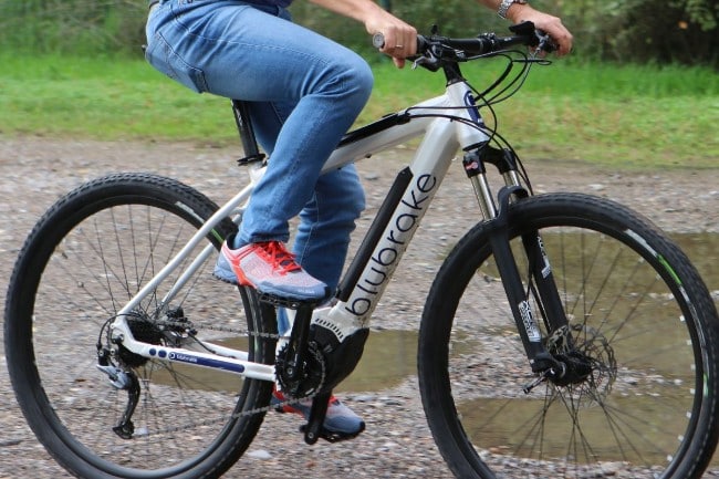 Il Blubrake ABS è disponibile in due versioni, una integrata, ed è stato infatti già adottato di serie da alcune aziende produttrici di eBike, come Bulls, Crescent e Trifecta, e una esterna per applicarlo più facilmente a qualunque bici. È composto da un attuatore posto fra leva e pinza freno per gestire l’intensità della frenata, da una centralina di controllo, da un sensore di velocità alla ruota e da una spia/display che ci informa se il sistema è attivo. Il sensore sulla ruota anteriore misura la velocità della ruota e invia le informazioni alla centralina che le elabora insieme a un sistema inerziale a 6 assi. Se viene rilevata una situazione pericolosa l’attuatore regola la frenata in modo continuo diminuendone o aumentandone l’intensità evitando quindi sia il bloccaggio della ruota anteriore che il sollevamento della posteriore per una maggiore sicurezza sui fondi scivolosi, sia su strada che in fuoristrada.
