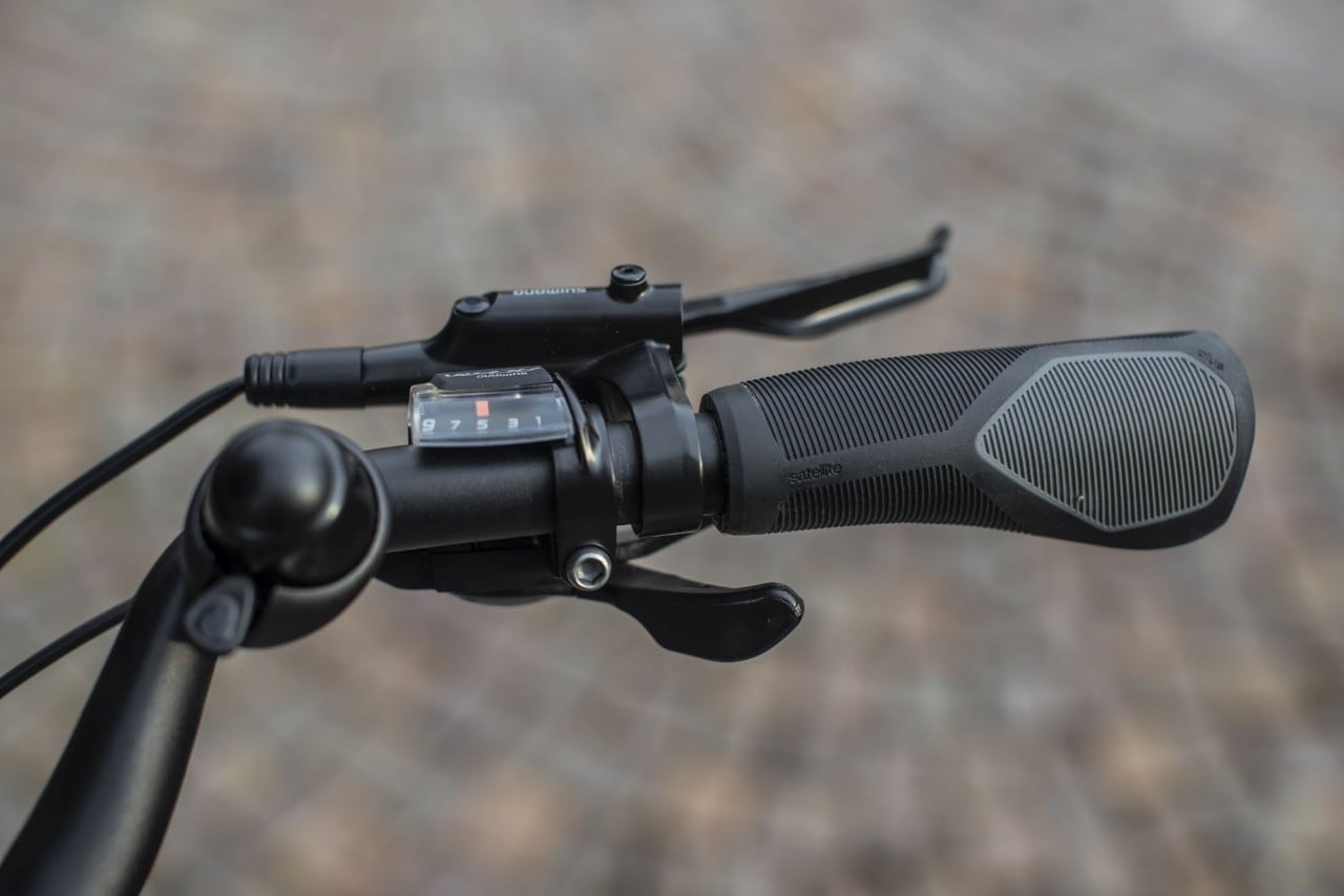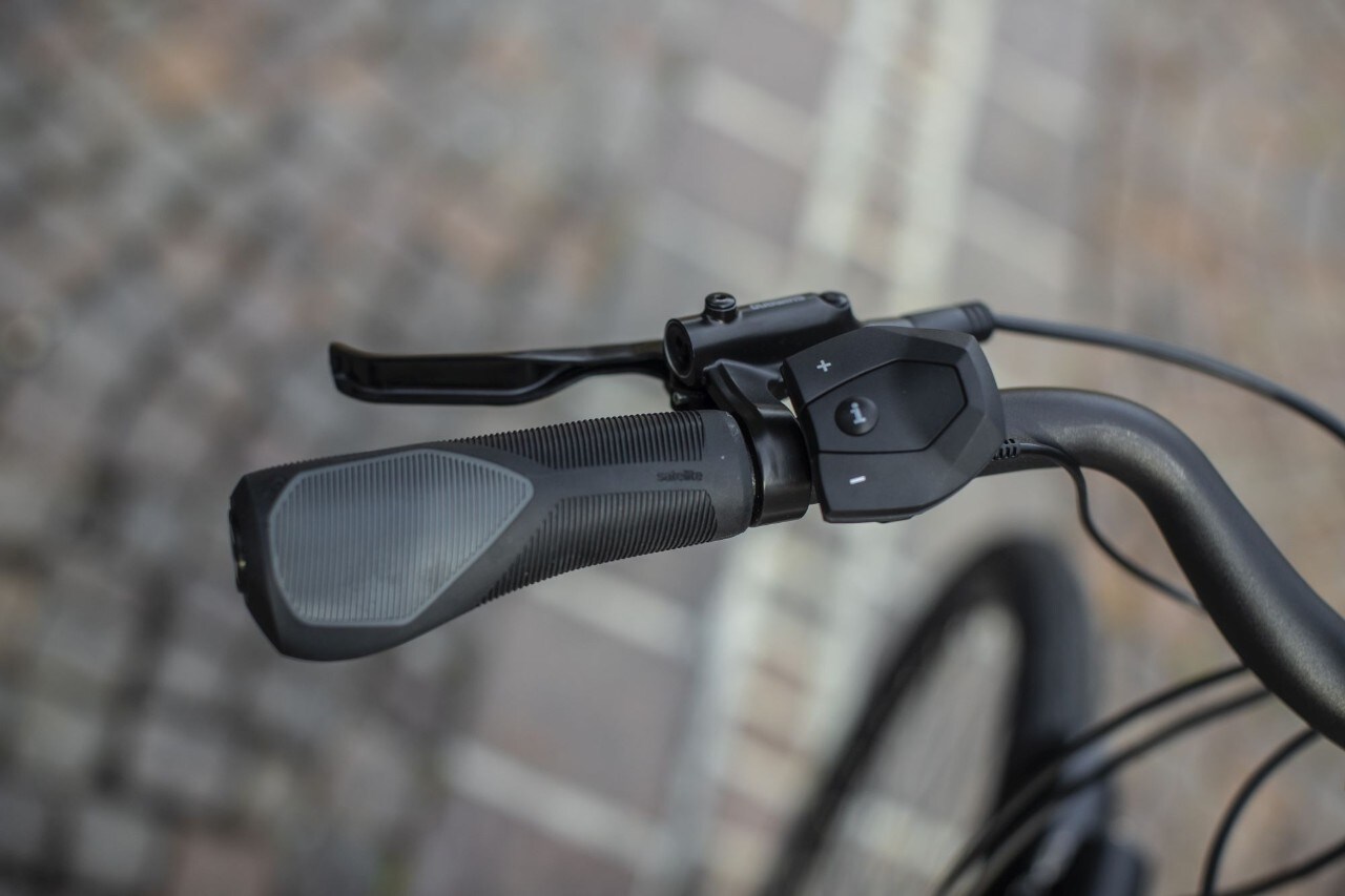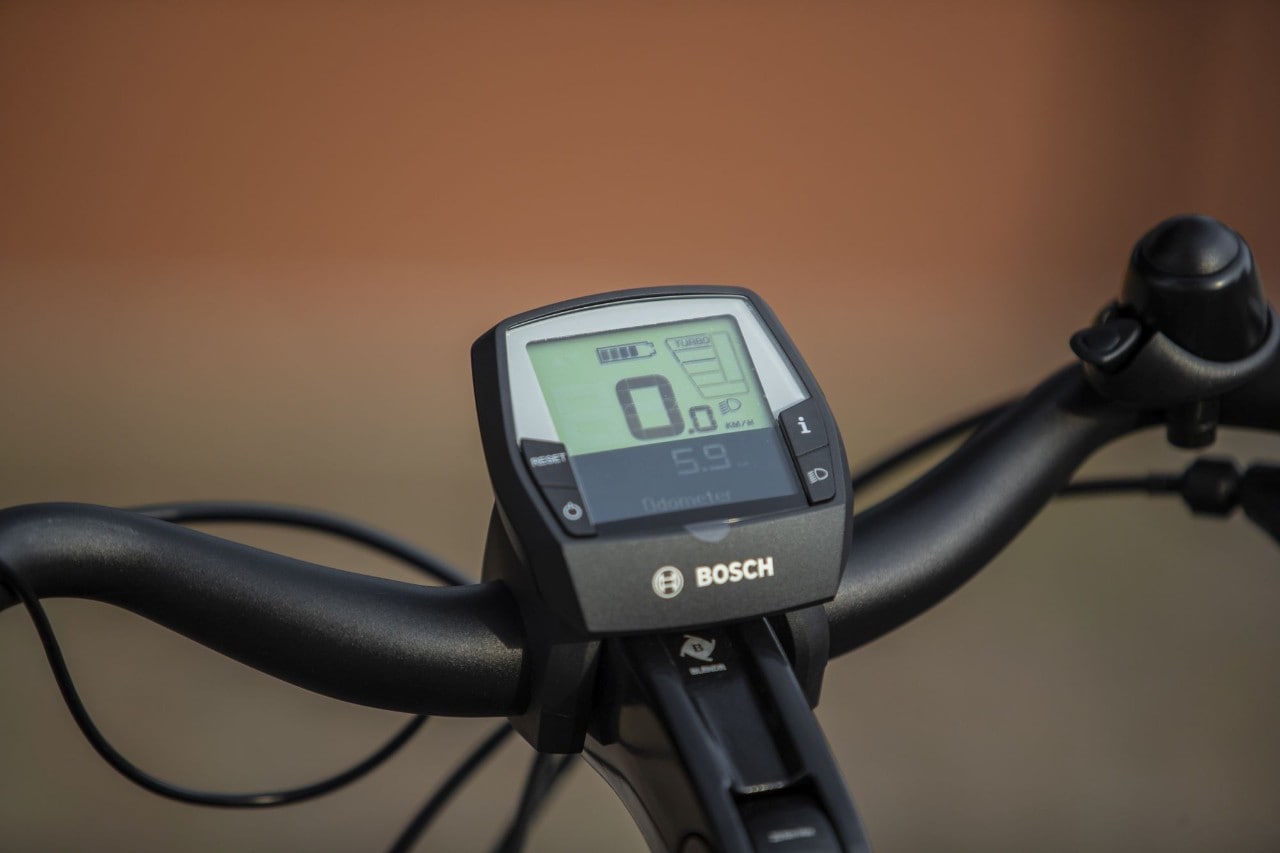 Il computer di bordo è il Bosch Intuvia. Sul display sono visualizzati velocità istantanea, autonomia residua, km percorsi e velocità media. Un sensore di potenza mostra sullo schermo se è necessario cambiare rapporto per evitare pedalate discontinue. I livelli di assistenza sono selezionabili tramite un comando separato, posizionato sulla manopola sinistra. Le configurazioni disponibili sono quattro: off, eco, tour, sport, turbo. Dalla pulsantiera è anche possibile navigare tra i dati di viaggio. Anche le luci della ebike vengono direttamente comandate da un pulsante fisico montato sul display. Una porta micro USB collocata sul retro del computer permette di ricaricare il proprio smartphone durante la pedalata