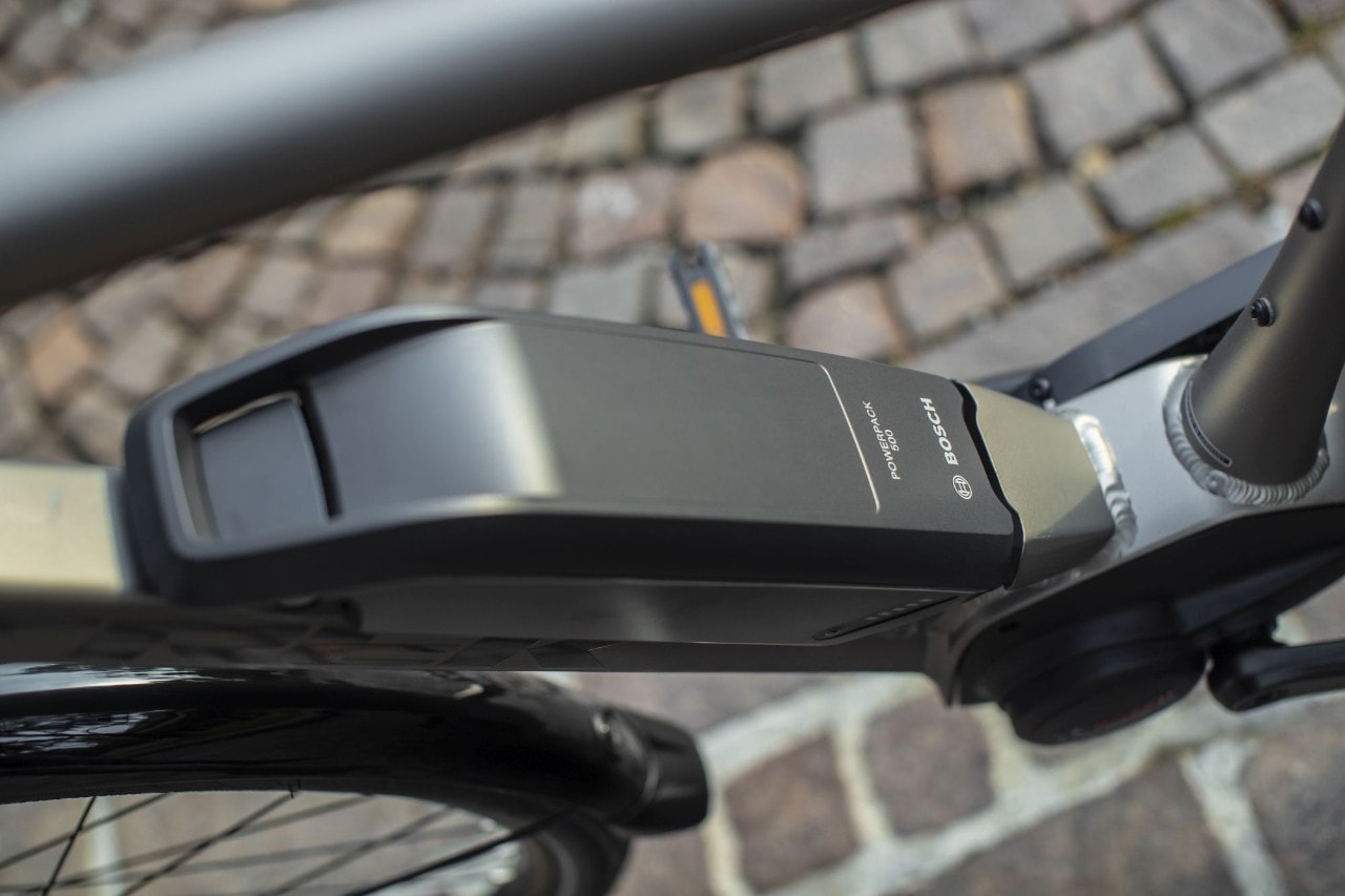L’assistenza elettrica della Verve+2 è affidata alla tecnologia Bosch. Il pacchetto comprende una batteria Bosch Powerpack disponibile in tre configurazioni: 300Wh, 400Wh e 500Wh. L’accumulatore è montato sul tubo del telaio obliquo ed è dotato di sgancio rapido azionabile con la chiavetta in dotazione. Per la ricarica è necessario smontare la batteria che verrà collegata all’alimentatore Bosch.