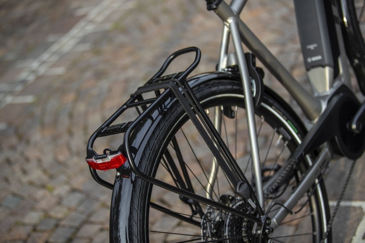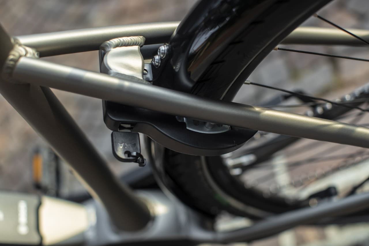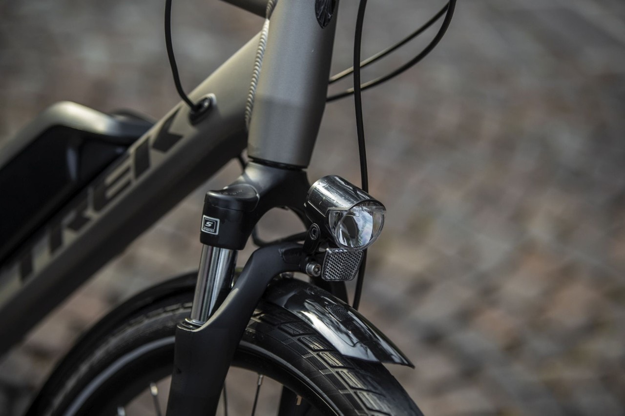 La ebike di Trek è provvista di serie di luci anteriore e posteriore per la visibilità notturna. Il portapacchi posteriore che può sostenere un carico massimo di 25 kg ha anche la pratica corda elastica per trasportare in sicurezza i propri oggetti. Sopra la ruota posteriore è presente anche il lucchetto bloccaruota di sicurezza azionabile con la chiave utilizzata per lo sgancio della batteria. Il cavalletto in alluminio è montato sulla ruota posteriore e risulta molto stabile e robusto.