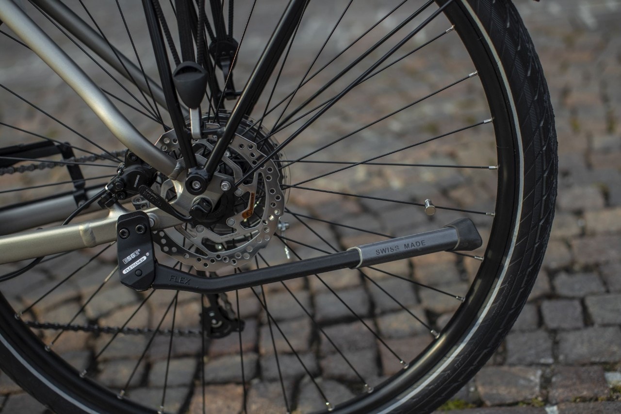 La praticità di questa e-bike la si ritrova anche in garage, il cavalletto posteriore e il peso ridotto permettono di spostarla comodamente nonostante le dimensioni. Infine, il bloccaruota è comodo per piccole soste oppure da integrare a un classico lucchetto da bici.