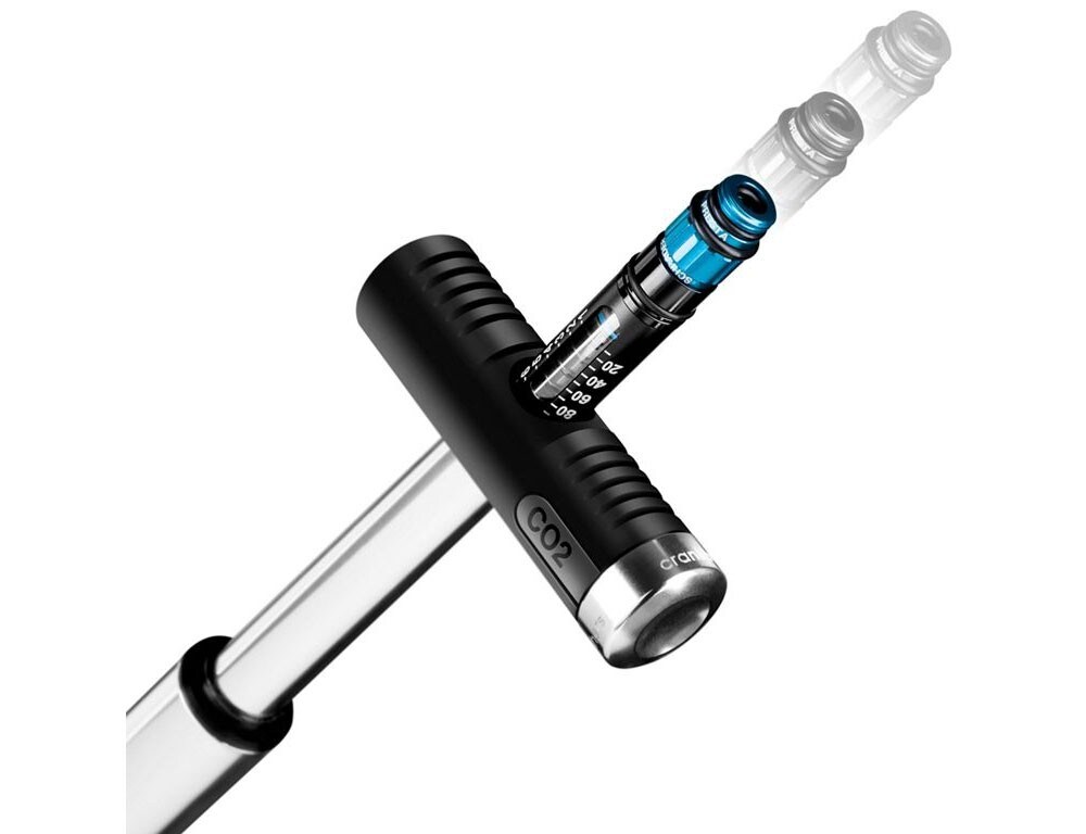 La pompa Crank Brothers Klic HV Mini è una pompa molto compatta, ma in grado di fornire un ampio volume d’aria. Il tubo flessibile dotato di testa reversibile per adattarsi alle valvole Presta e Schrader è estraibile nonché dotato di manometro. La manopola è pieghevole per una maggiore comodità di gonfiaggio. È realizzata in alluminio, raggiunge una pressione massima di 11 bar, è lunga 260 mm, pesa 150 grammi ed è fornita di supporto per gli attacchi del portaborraccia. Costa 32,99 euro.