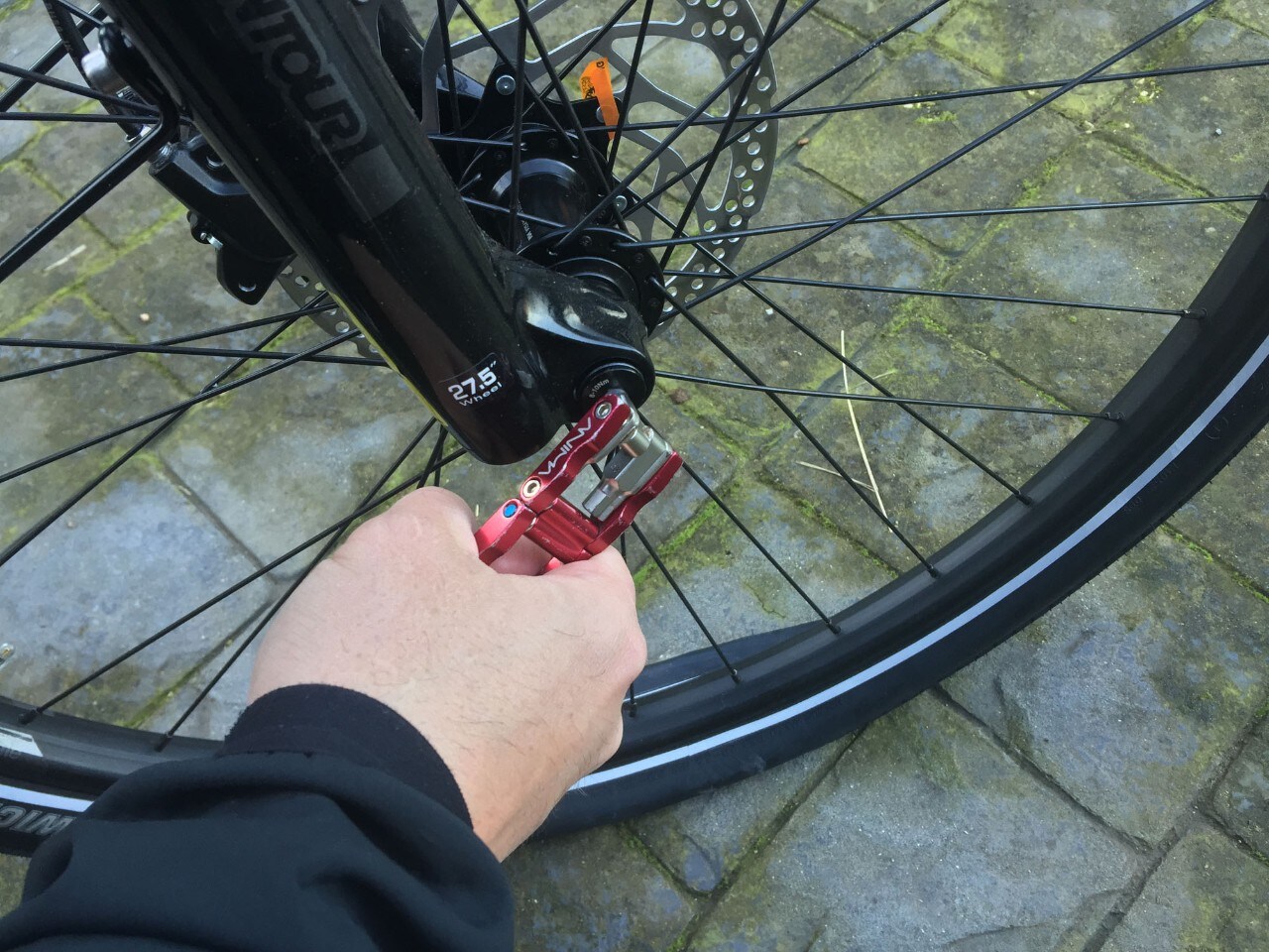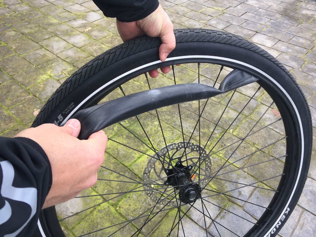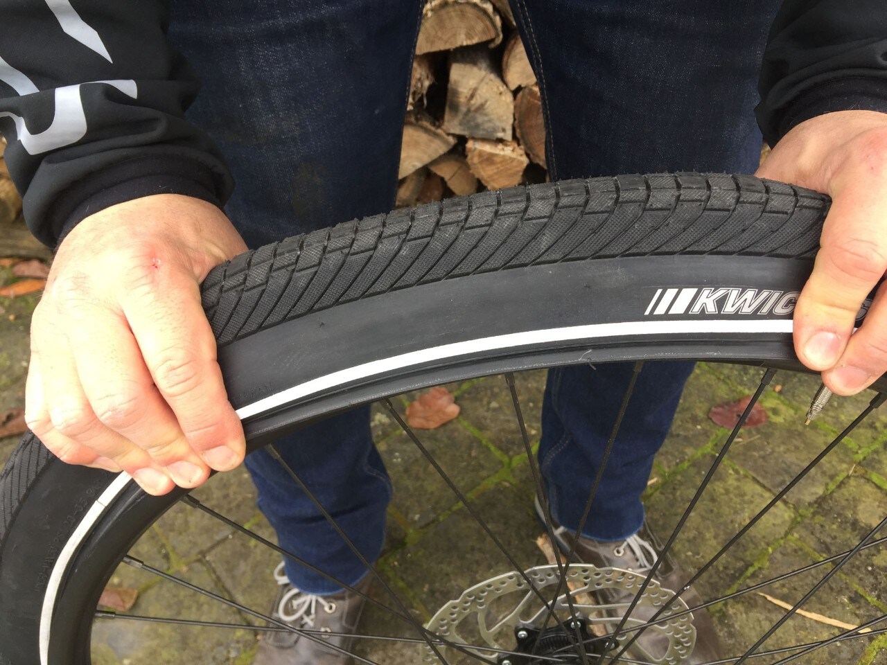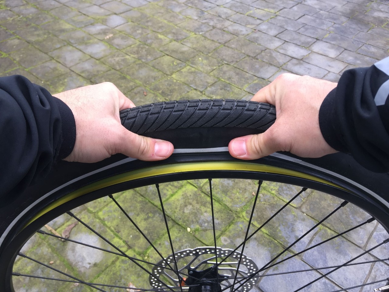 Prima di tutto si smonta la ruota dalla bicicletta, operazione più facile se la ruota è dotata di uno sgancio rapido apribile a mano e se è la ruota è quella anteriore. Togliere la ruota posteriore, a causa di catena e cambio, oppure una ruota che necessita di attrezzi per essere tolta dal telaio, è chiaramente un'operazione più laboriosa; per togliere la ruota posteriore è necessario mettere la catena sul pignone più piccolo e arretrare leggermente il cambio mentre la si sfila dal telaio. Inoltre se il freno è a disco non ci saranno ulteriori accorgimenti da adottare, mentre se il freno è a pattini, di tipo V-Brake o Cantilever, bisogna sganciarlo per far uscire la ruota.