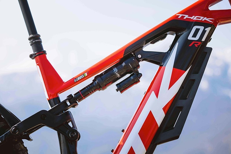 La “R” nasce sul telaio della TK01 già in gamma, disegnato sui principi della TCG+ THOK Control Geometry Plus. Orientata alla performance pura, la nuova TK01 R è montata con componentistica al top dell’innovazione, tra cui la forcella RockShox ZEB 170 mm con steli da 38 mm, ammortizzazione posteriore 170 mm RockShox Super Deluxe Select +RT con Debonair Technology e i freni SHIMANO XT a 4 pistoni. Il motore è il super-performante Shimano EP8 da 85 Nm, totalmente personalizzabile tramite App. Il baricentro basso, tipico delle THOK, è assicurato dalla batteria da 630 Wh, integrata nel down tube verticalizzato.