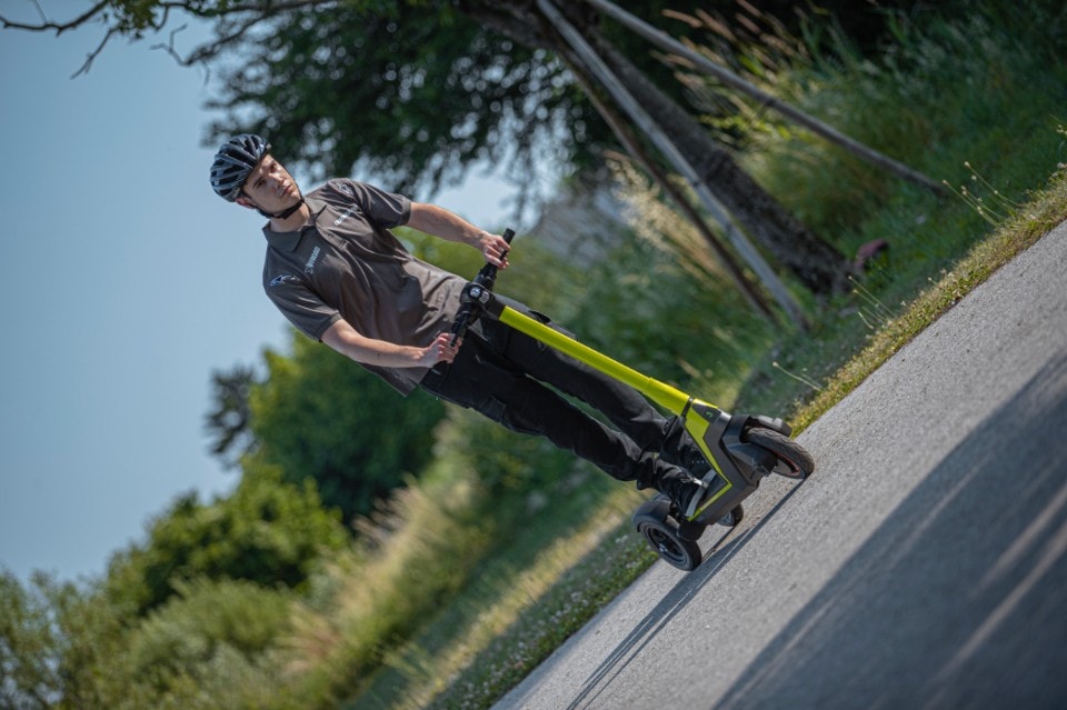 Un monopattino che piega davvero in curva, la sensazione di stabilità è assoluta su e.sco e anche ad alte velocità non c'è il rischio caduta