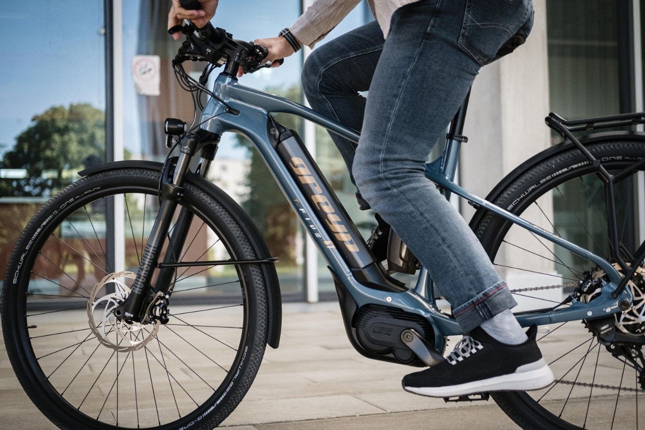 Telaio in alluminio, capiente batteria da 700 Wh, forcella con escursione da 100 mm e comodi pneumatici da 29” Schwalbe G-One Allround per la Greyp T5.2 e-SUV, l'e-bike ideale per gli spostamenti quotidiani o le passeggiate del weekend