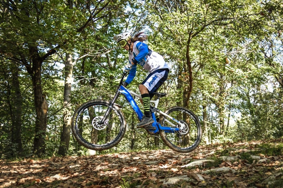 Oltre al motore, alle gambe e alle abilità tecniche del pilota serve però anche un telaio e una ciclistica all’altezza e con Fulgur, azienda italiana costruttrice di bici, il propulsore Polini E-P3+ si riesce ad esprimere al meglio. Nel nostro primo contatto abbiamo provato la nuova Fulgur Mula, la versione più racing: telaio full carbon, batteria integrata e freni Formula Cura da 2 e 4 pistoni e sospensioni Ohlins.