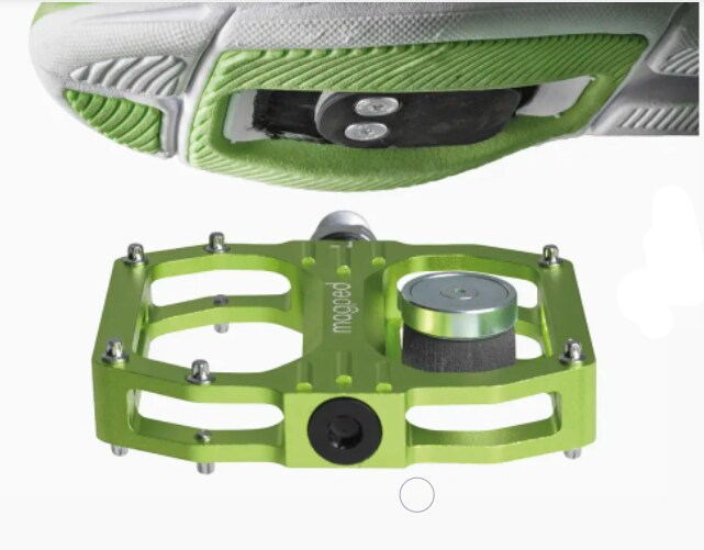 Magped propone la sua interpretazione di contatto scarpa-pedale sostituendo il sistema di bloccaggio meccanico con dei magneti.