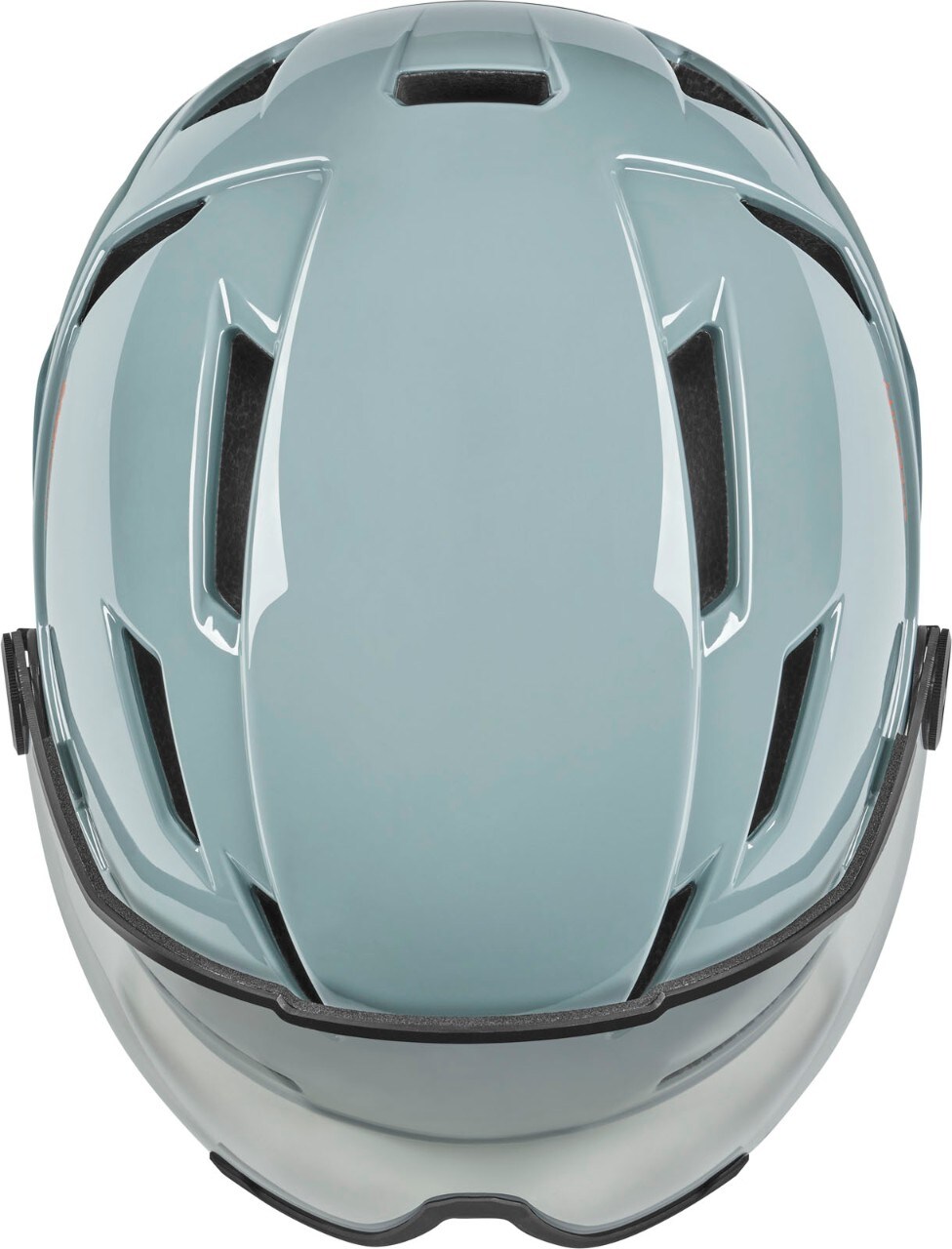 La visiera nella parte superiore è a filo con la calotta del casco per non far passare l’acqua in caso di pioggia, intorno al naso è rifinita con una protezione morbida ed è infine facilmente sostituibile. I fori di ventilazione sono 17 in tutto e quelli frontali sono protetti da griglie anti-insetti. Posteriormente sono presenti dei dettagli riflettenti per la sicurezza passiva e il cinghietto sottogola è regolabile per adattarsi facilmente ad ogni dimensione della testa.