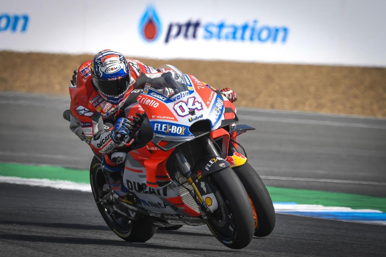 In Ducati gli applausi sono tutti per Andrea Dovizioso. Anche a Buriram il vicecampione del mondo ha dato tutto quel che poteva tentando anche l’impossibile sul finale e alla fine era soddisfatto e sorridente anche se secondo, purtroppo oggi nella sua classifica pesano come macigni i passi falsi di inizio stagione. Ora per Dovi l'impresa è veramente quasi impossibile, ma la soddisfazione di essere a questo livello aiuta a guardare avanti con fiducia.“Sono molto contento di questo secondo posto, anche se ho perso la vittoria proprio all’ultima curva, ha commentato Dovizioso. Purtroppo non conoscevo bene i punti di forza e di debolezza di Marquez perché sono stato quasi sempre in testa: ho provato a controbattere il suo sorpasso alla curva 5 ma ho perso un po’ di terreno e, anche se sono poi riuscito a recuperare all’ultima curva, non ero abbastanza vicino a lui per farcela. Peccato, però questo secondo posto per me vale più di quello di Aragón perché su una pista con queste caratteristiche l’anno scorso non saremmo riusciti a lottare per la vittoria e quindi sono soddisfatto dei miglioramenti che continuiamo a fare ad ogni gara. Insieme ai miei ingegneri riusciamo sempre a capire qualcosa di nuovo, lavoriamo molto bene e questo adesso ci permette di giocarci la vittoria quasi in ogni gara”.