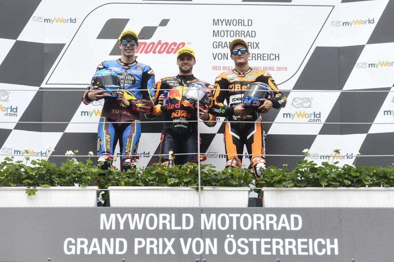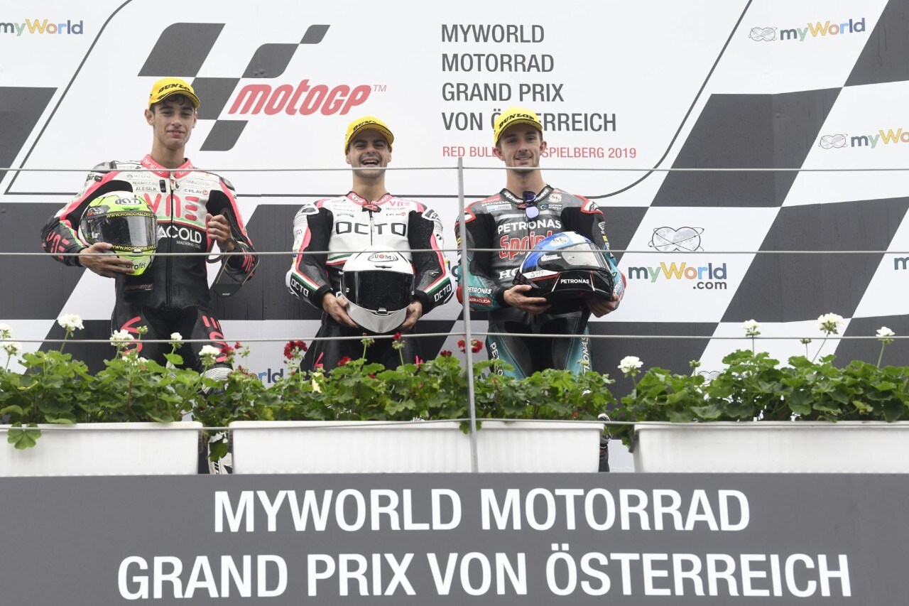 Una bella storia nella Moto3 con Romano Fenati che dopo aver attraversato un periodo difficile in cui aveva anche pensato di lasciare le corse, ritrova la vittoria e precede sul traguardo il compagno Tony Arbolino e John McPhee. In Moto2 successo per Brad Binder, mentre Alex Marquez secondo vola in classifica e tiene testa a Jorge Navarro.