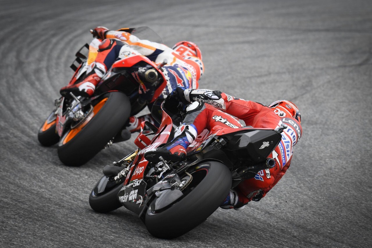 Battere Marquez e la Honda in questo stato ribadisce il valore di Dovizioso e anche se nella classifica del mondiale il Campione del mondo è sempre saldamente al comando, con questa vittoria Andrea Dovizioso dimostra di continuare a crederci e di continuare a essere il riferimento della Ducati. “Sono davvero molto contento, ha esultato Dovizioso, perché questa vittoria era davvero importante per me. Verso fine gara avevo un buon grip a destra e questo mi ha consentito di tentare con successo quel sorpasso incredibile all’ultima curva. La mia strategia per la gara è stata quella di essere aggressivo fin dal primo giro, ma Marquez è stato più aggressivo di me. Lui ha provato da subito ad imporre il suo ritmo ma io gli ho sempre risposto e verso la fine credo che avesse le gomme più consumate delle mie per cui sono riuscito a restargli attaccato e ho tentato con successo quel sorpasso un po’ pazzo all’ultima curva. Voglio ringraziare la Ducati e la mia squadra perché oggi abbiamo fatto tutto in modo perfetto”.