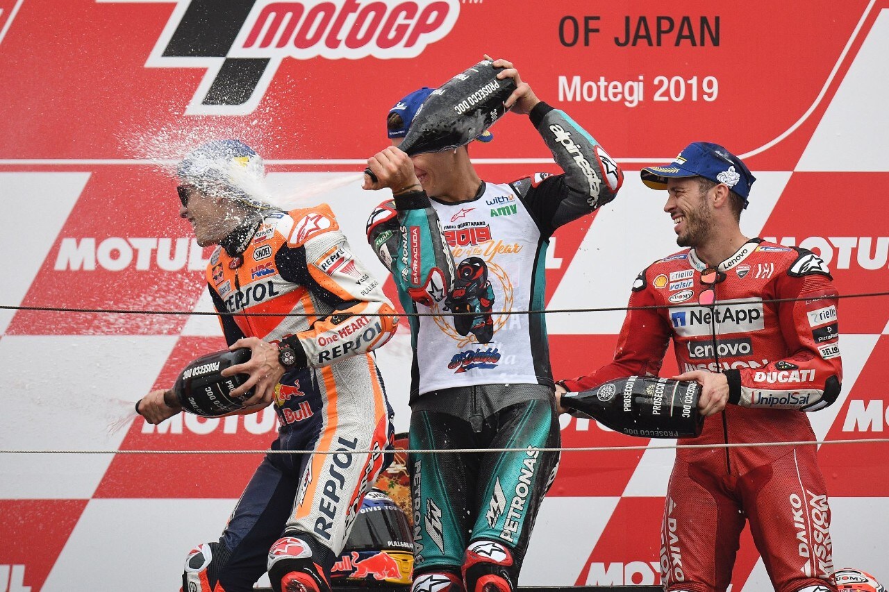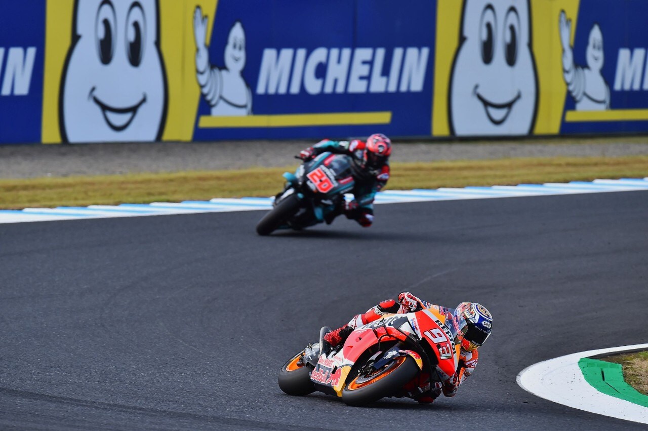 Il suo primo rivale è stato Fabio Quartararo. Il ventenne francese ha provato a star davanti all'inizio, ma Marquez di slancio ha rimesso le cose a posto e non c’è stato più nulla da fare fino al traguardo, tagliato in seconda posizione. Per Quartararo l’altra soddisfazione è aver centrato il suo obiettivo stagionale: essere rookie of the year con la Yamaha del team Petronas.