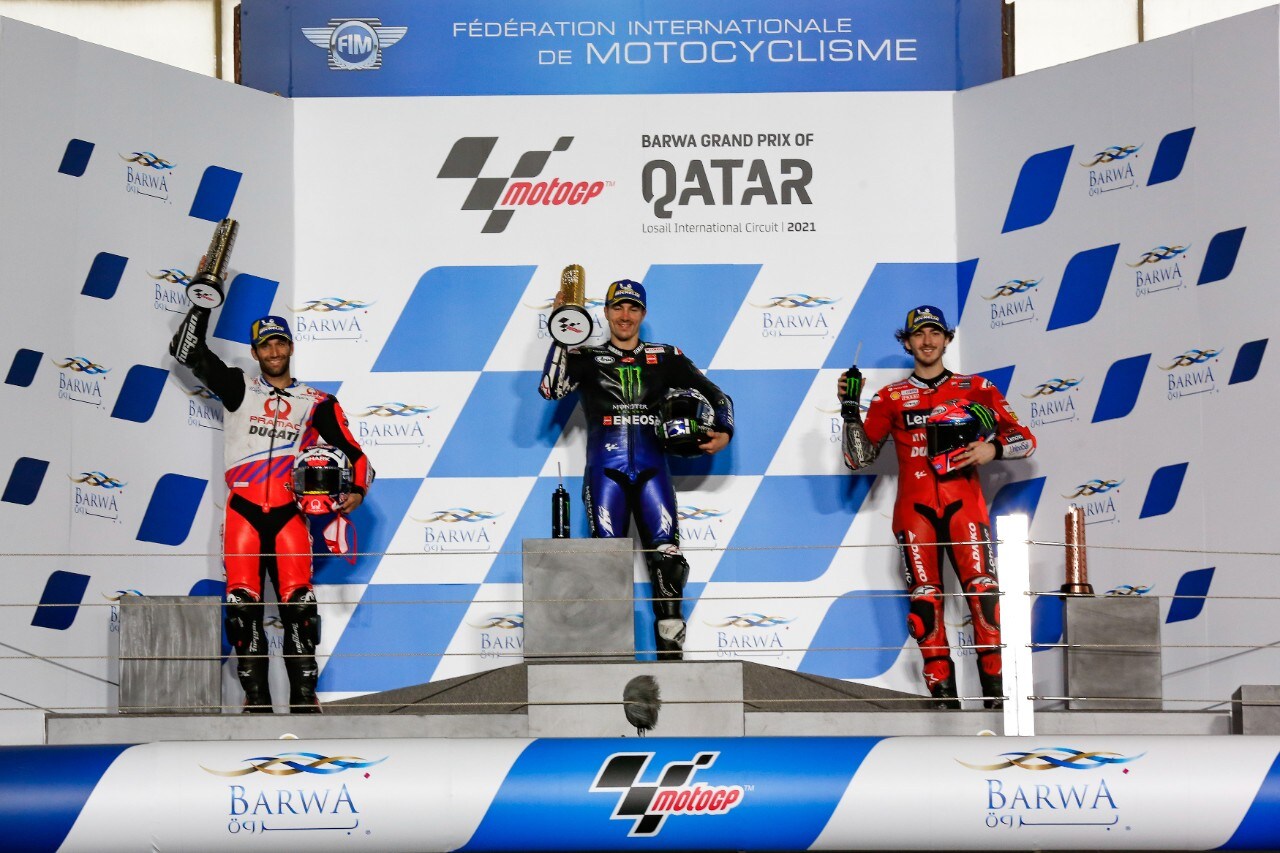 In Qatar la Ducati ha fatto la voce grossa fin dalle prove. Pecco Bagnaia che scattava dalla pole, alla prima uscita da ufficiale, dopo un buon avvio e la soddisfazione di essere stato il protagonista della prima parte della gara, ha però dovuto cedere il passo di fronte ad un Vinales indomabile e ad un rinato Johann Zarco che sulla Ducati Pramac ha ritrovato la velocità, la determinazione e… il podio. A Bagnaia seppur soddisfatto, resta la sensazione di aver perso l’occasione buona, ma fra pochi giorni avrà già l’occasione di rifarsi.
