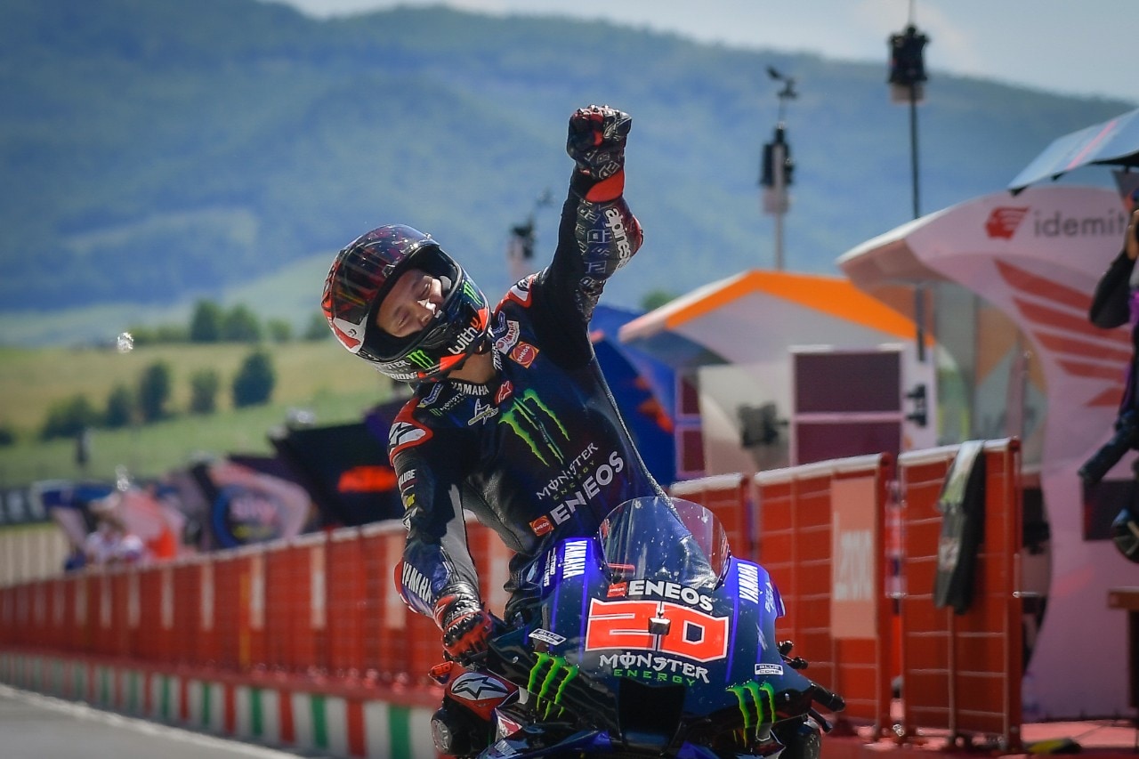 In una giornata triste segnata dalla scomparsa del giovane pilota svizzero Jason Dupasquier, il francese mette a segno il suo sesto successo in MotoGP, mentre Bagnaia finisce a terra. Sul podio tornano la KTM con Oliveira e la Suzuki con Mir