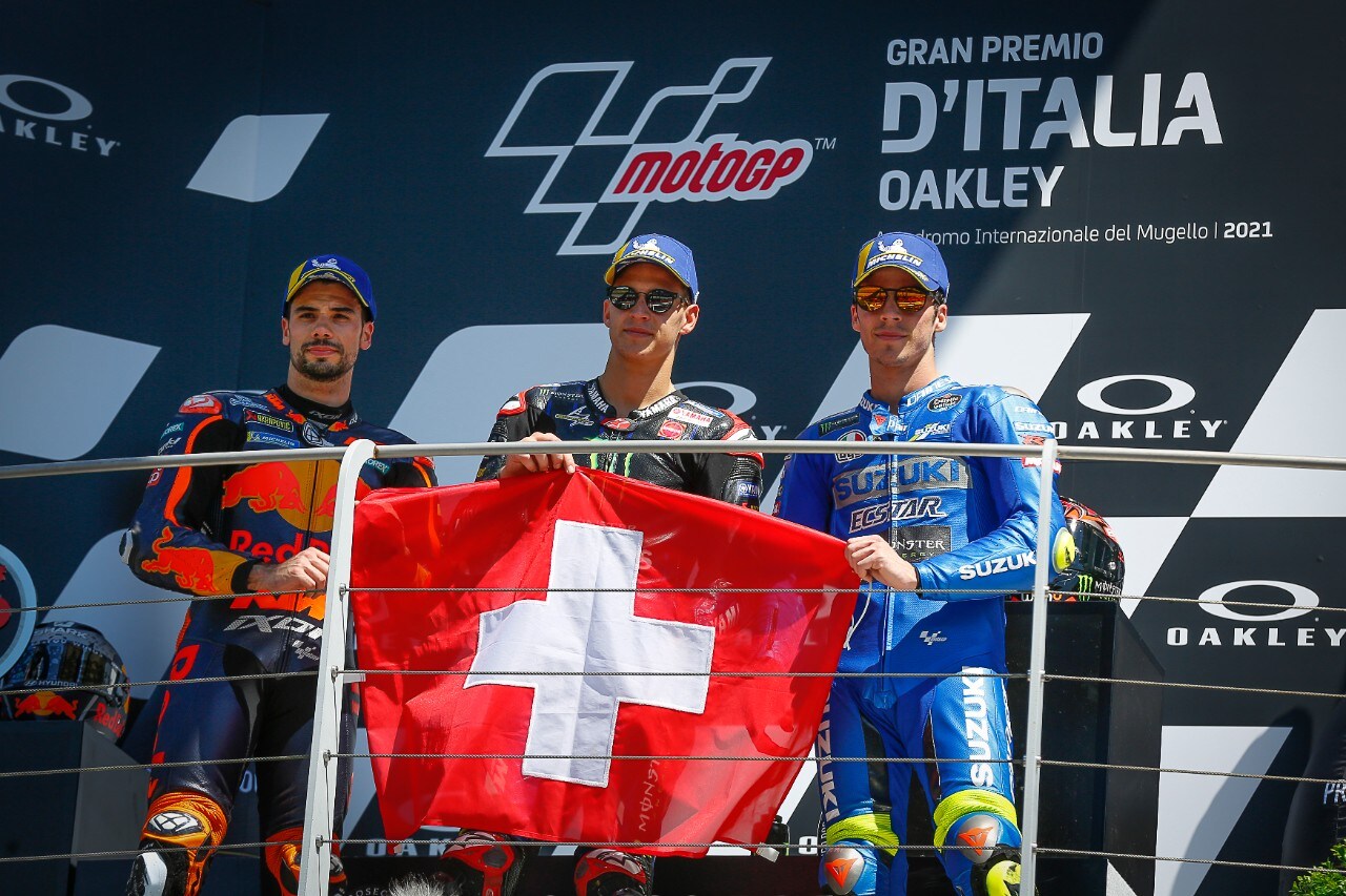 Il pilota francese in una corsa difficile per il clima che si respirava nelle colline toscane, in cui per tutti i piloti correre è stato difficile e per molti nemmeno forse giusto, ha gareggiato sicuro di sé e ha portato a casa un successo che lo lancia nella classifica del mondiale e lo rafforza. Un successo che un commosso Fabio Quartararo ha subito dedicato al pilota svizzero scomparso e alla sua famiglia.